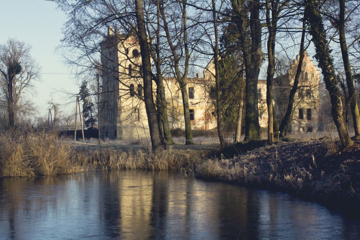 Zwiedzając takie miejsca nastawcie się na ubranie starych spodni, wysokich buciorów, już w pierwszym miejscu przyszło mi przedzierać się przez wysokie, oszronione trawska. No chyba, że nie chcecie podchodzić do budynku, ale w to nie uwierzę – wszystkie są cudne!