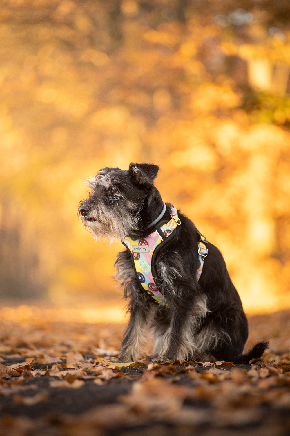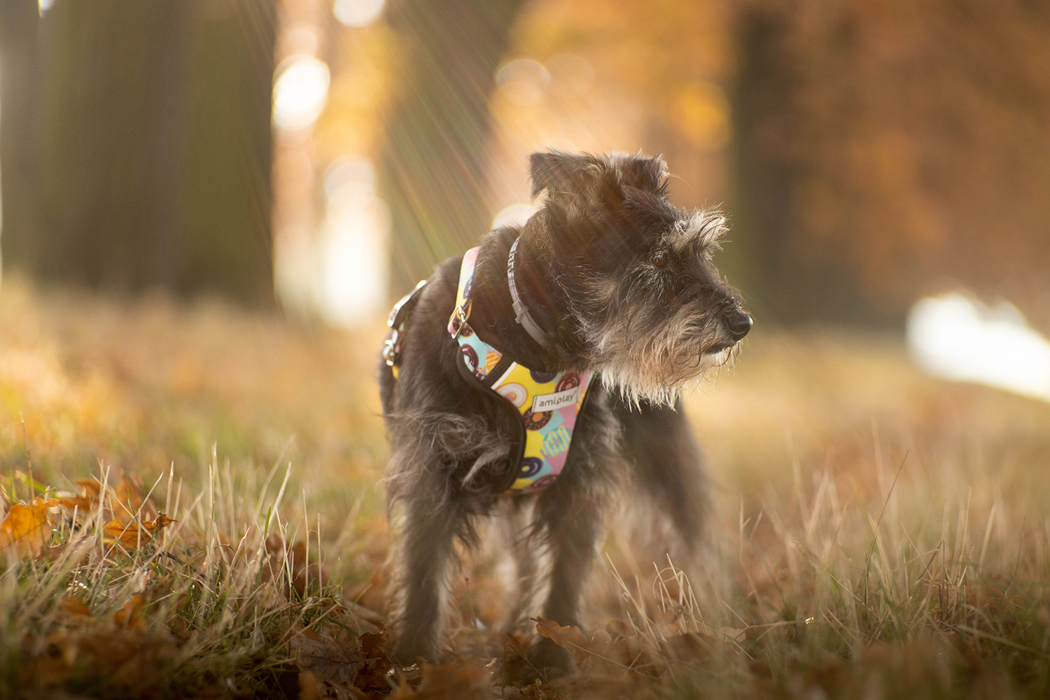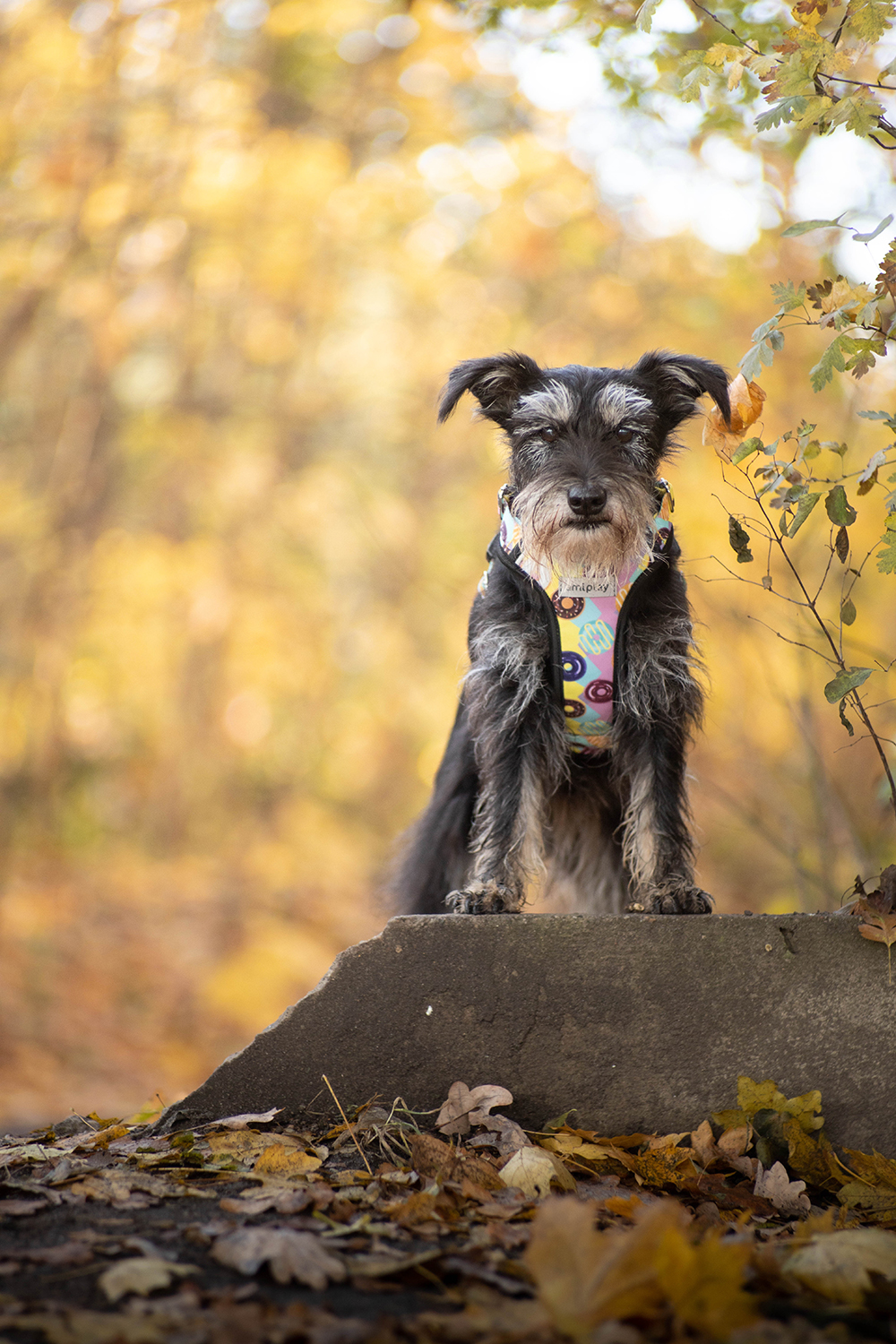 Na początek Pufinka. Prawo starszyzny oznacza również, że jej przypada w udziale test tego co najładniejsze <3 Jak się jest pieskiem od którego imienia wzięła się nazwa bloga to nie ma tego tamtego. Takim to sposobem na klacie Pufiny wylądowały szelki. Ale nie takie pierwsze lepsze, tylko model nówka, nowa kolekcja, prawie Fashion Week Paris, wersja wrocławska 😀 Nazywają się BeHappy Discovery Szelki