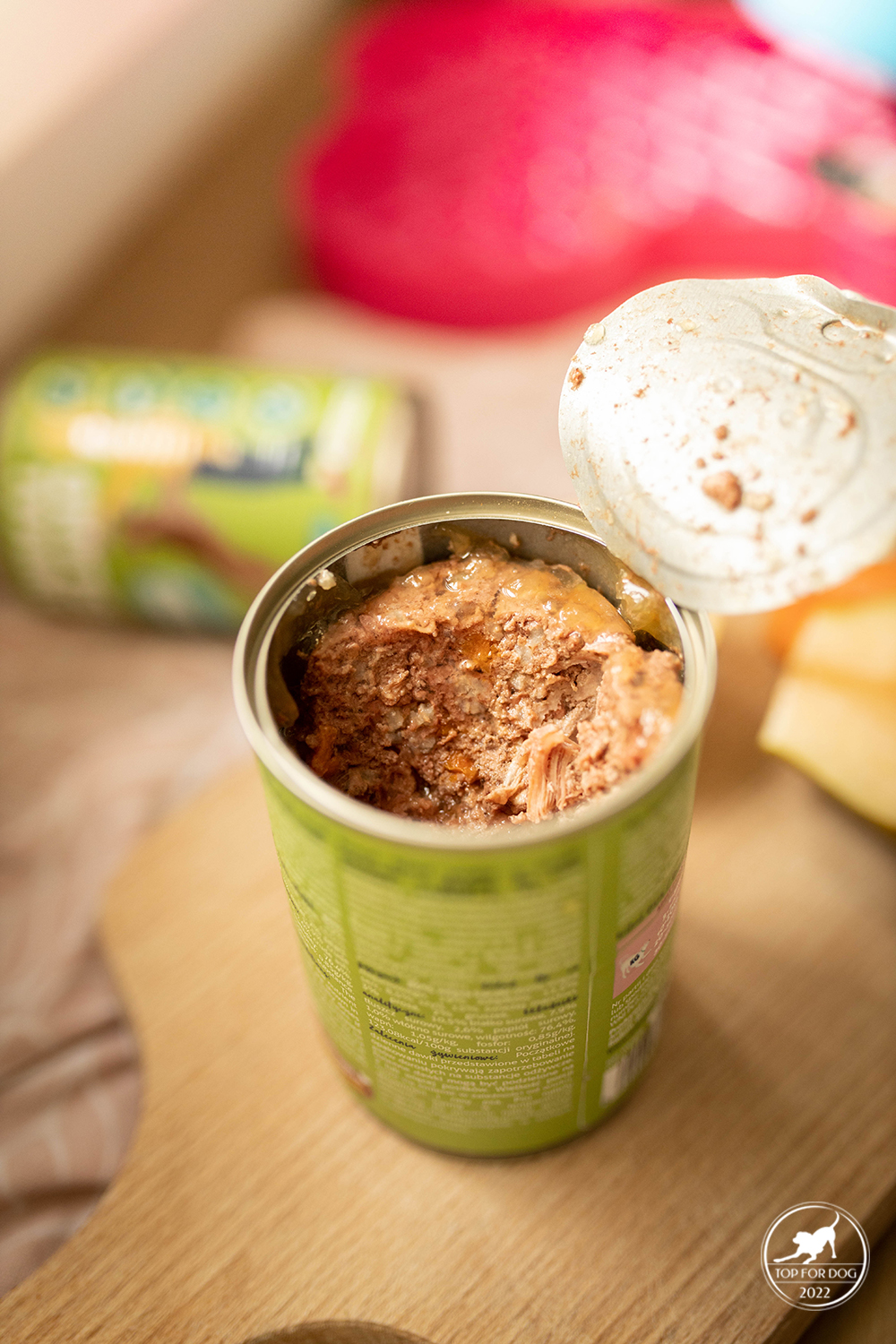 Jeszcze w temacie różnic między puszkami- trzeba mieć na uwadze, że wersja o mniejszej wilgotności będzie też mieć inną konsystencję. Będzie bardziej zbita i twardsza a przez to trzeba będzie więcej siły i cierpliwości, żeby zapakować ją do konga czy rozprowadzić po lickmacie. Zostawiam tą informację do zapamiętania szczególnie dla tych,którym przy takich czynnościach się spieszy . Ale coś za coś Ja biorę na klatę wolniejsze wypelnianie zabawek, jeśli oznaczać to ma pewniaka na brzuch Pufinki