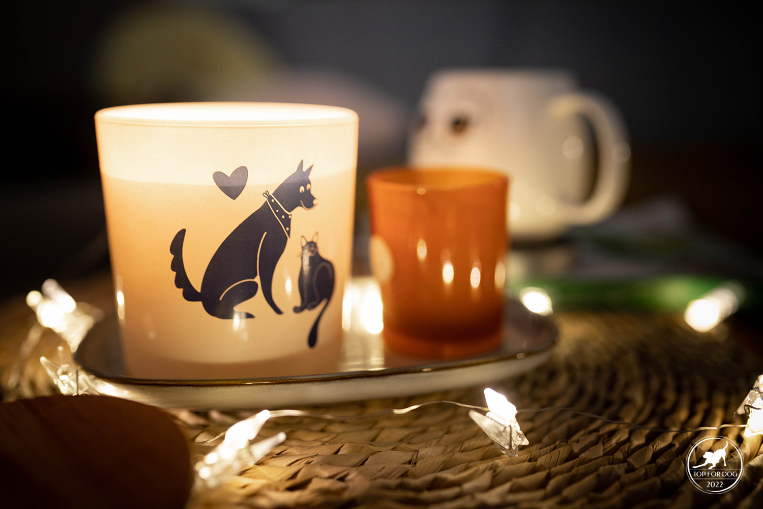 Na sam koniec podrzucę Wam jeszcze jedną rzecz od Animal Island, ale wyjątkowo nie dla piesków a dla właścicieli. Jak już zmęczycie się rozkminami o dietach, albo całym dniem, tudzież będziecie mieli ochotę zmienić zapachy w domu, z niwelowaniem pieskowego zapaszku łącznie, zerknijcie na świeczuchy. Całkiem spore- nasza ma 475 ml,z 3 knotami, szklana z uroczą grafiką. Według info na stronie, z certyfikowanych materiałów. Więc mimo, ze nie sojowa, to też nieszkodliwa. Ja świeczkoholikiem nie jestem, ale co jakiś czas, dła klimaciuku i ładnego zapachu, lubię sobie coś odpalić.