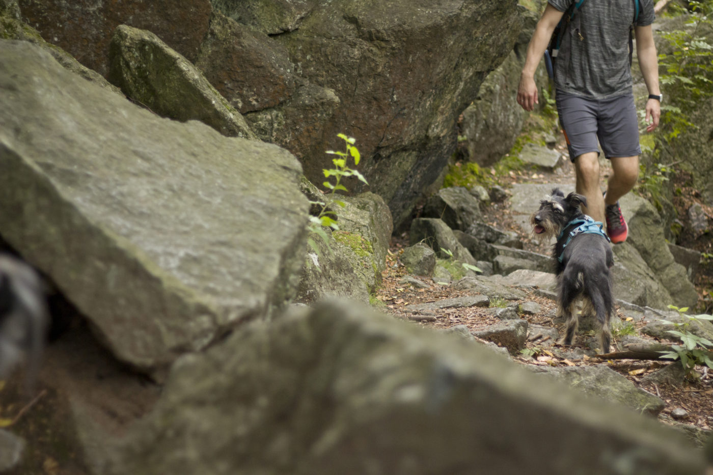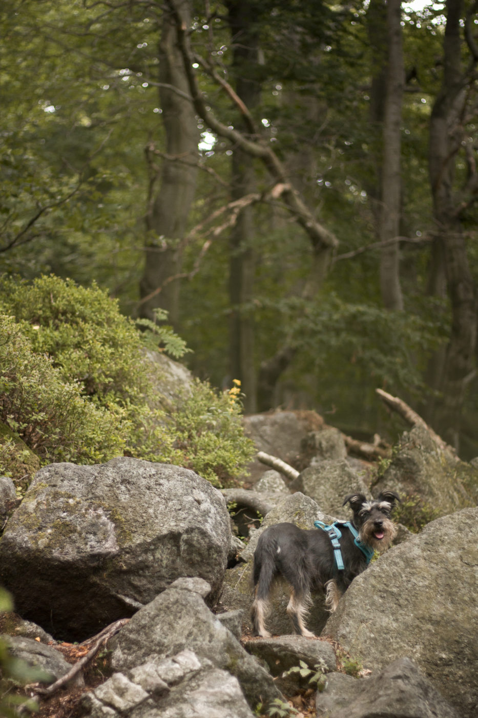 Kiedy już wejdziemy na niebieski, jego się trzymajmy. Przeprowadzi on nas przez, moim zdaniem najfajniejszy fragment wędrówek przez Masyw Ślęży. Przez Olbrzymki i punkt widokowy. Widok zdobywa dodatkowe punkty fajności za to, że jak już się na niego człowiek wdrapie, ma świetny widok na cel wędrówki- Ślężę. Ale nie ma co sie cykać, jest bliżej niż się wydaje 😉
