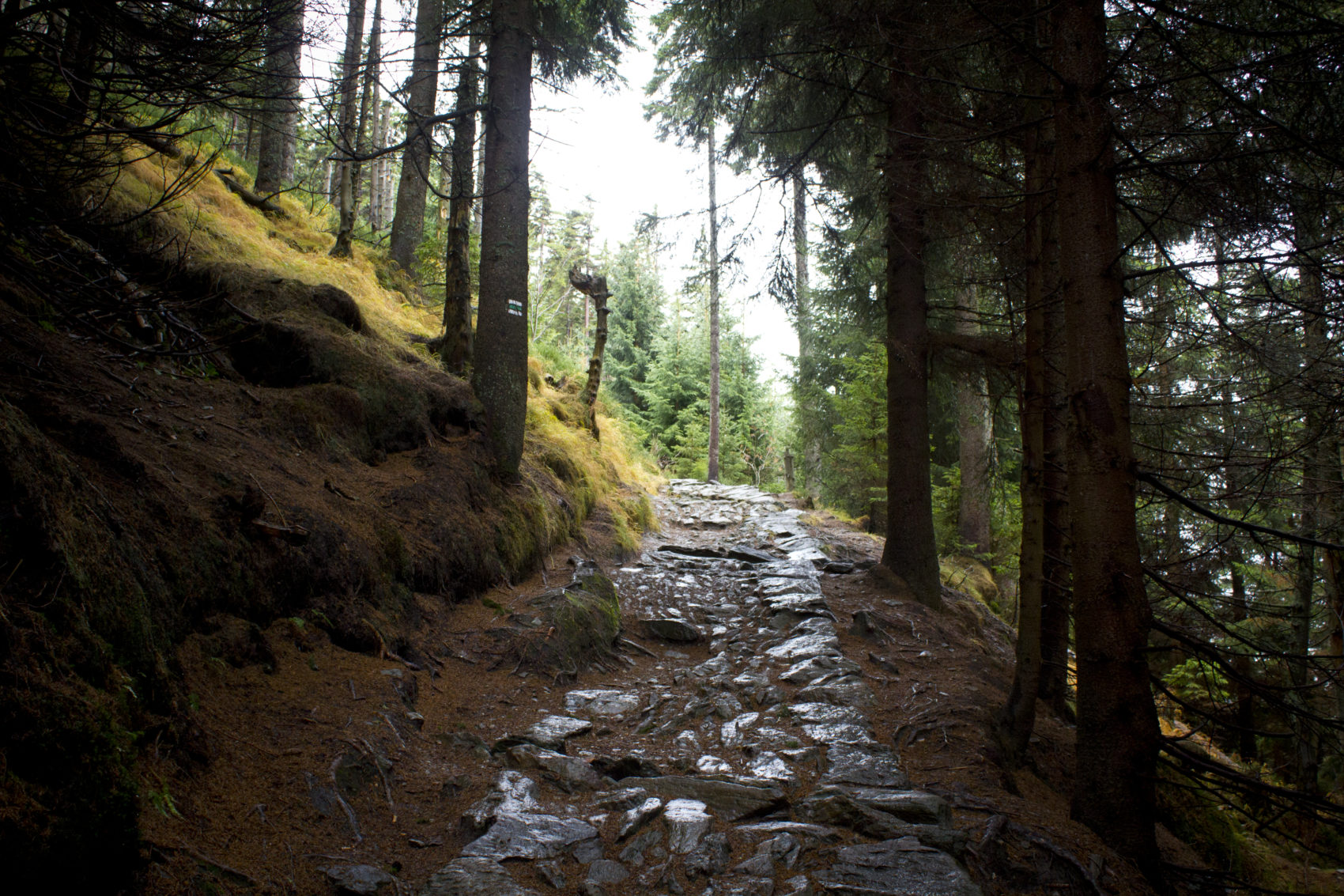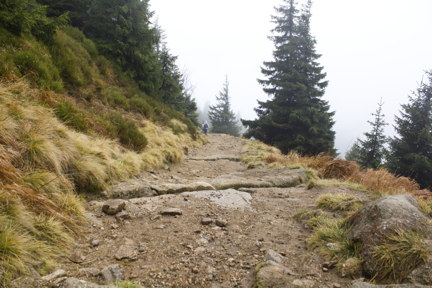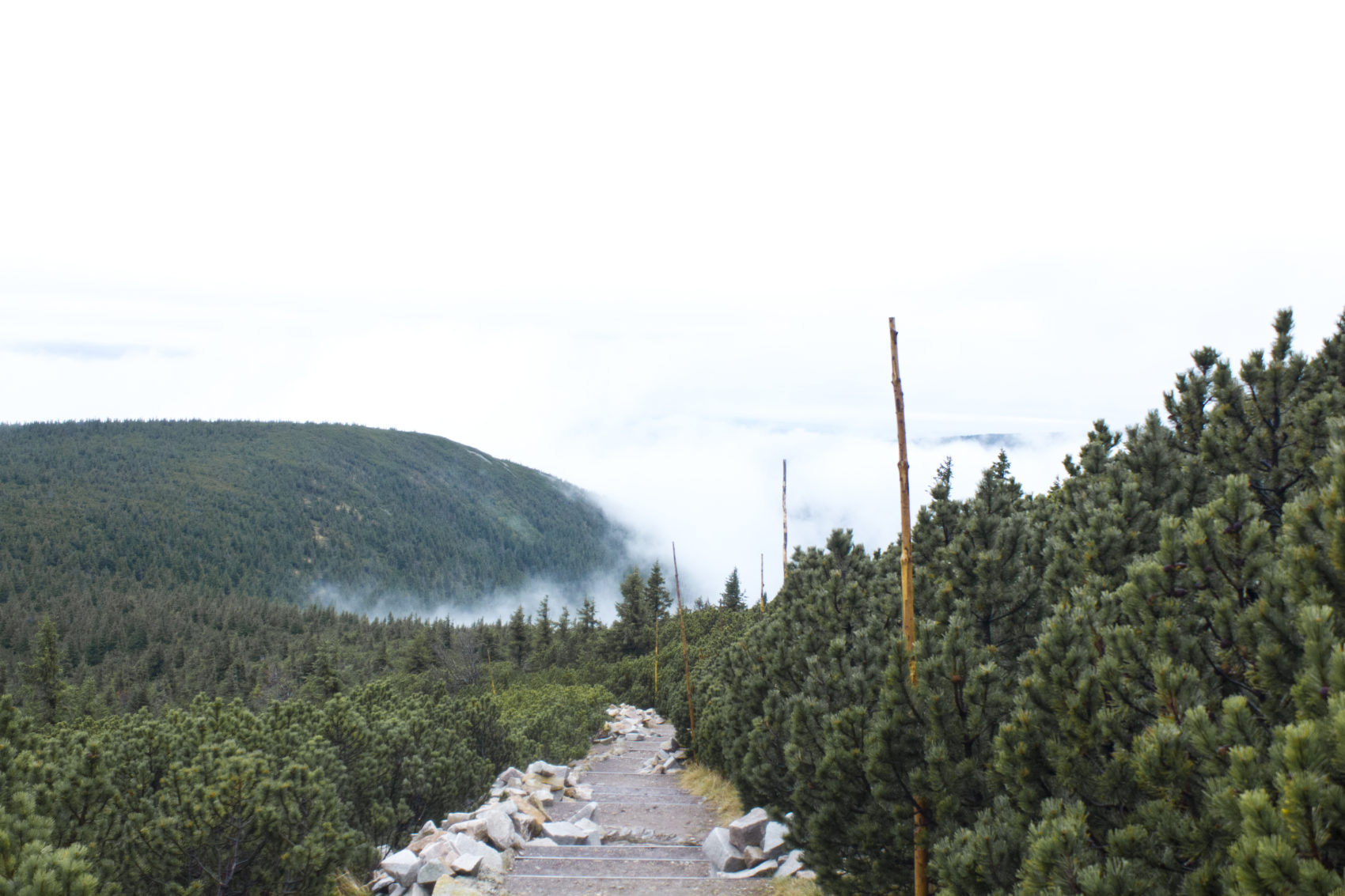 szlak niebieski od Domu Śląskiego prowadzi zejściem aż do samego Pecu