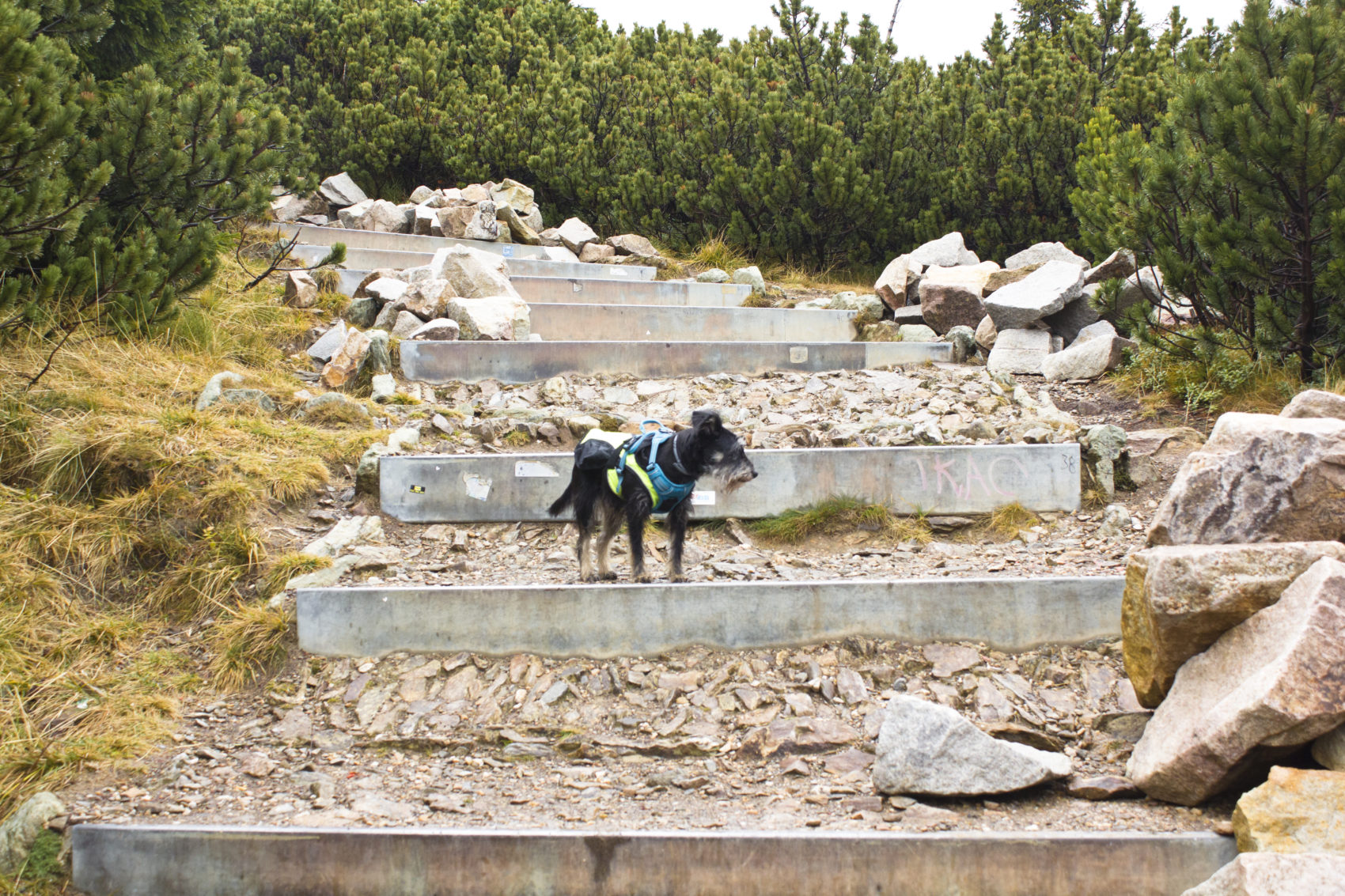 A samo podejście to wspinaczka po sporych kamieniach i wysokich „schodach”. Ponieważ Śnieżka z psem to właśnie wejście grupowe, pamiętajcie, że wskakiwanie po większych kamieniach może być forsujące dla mniejszych futer.