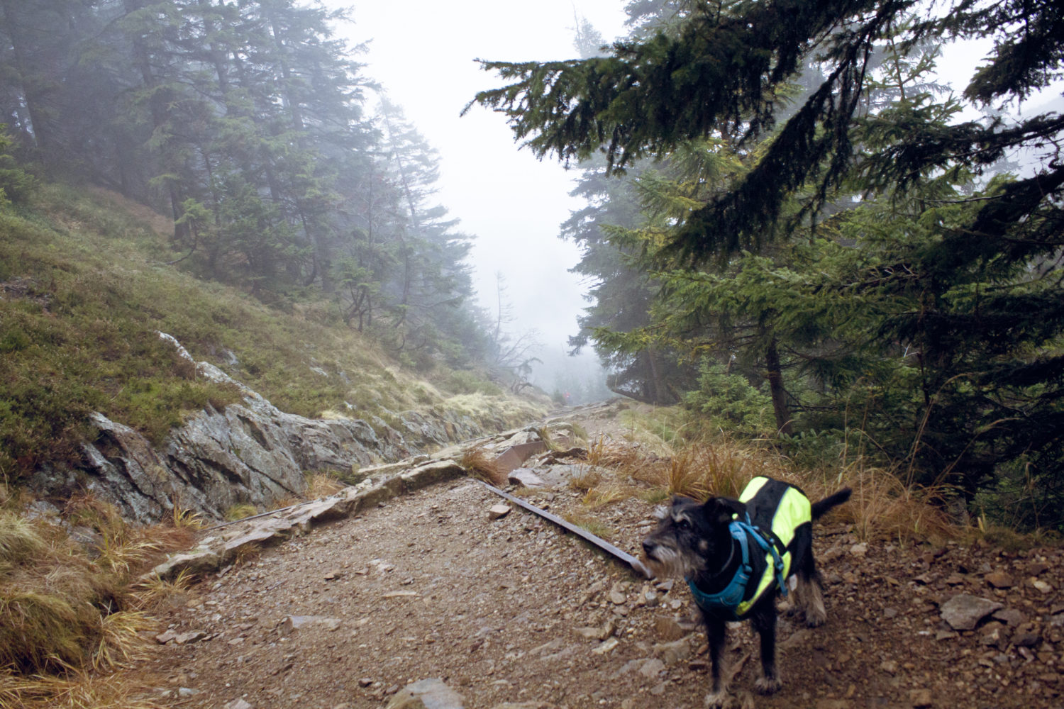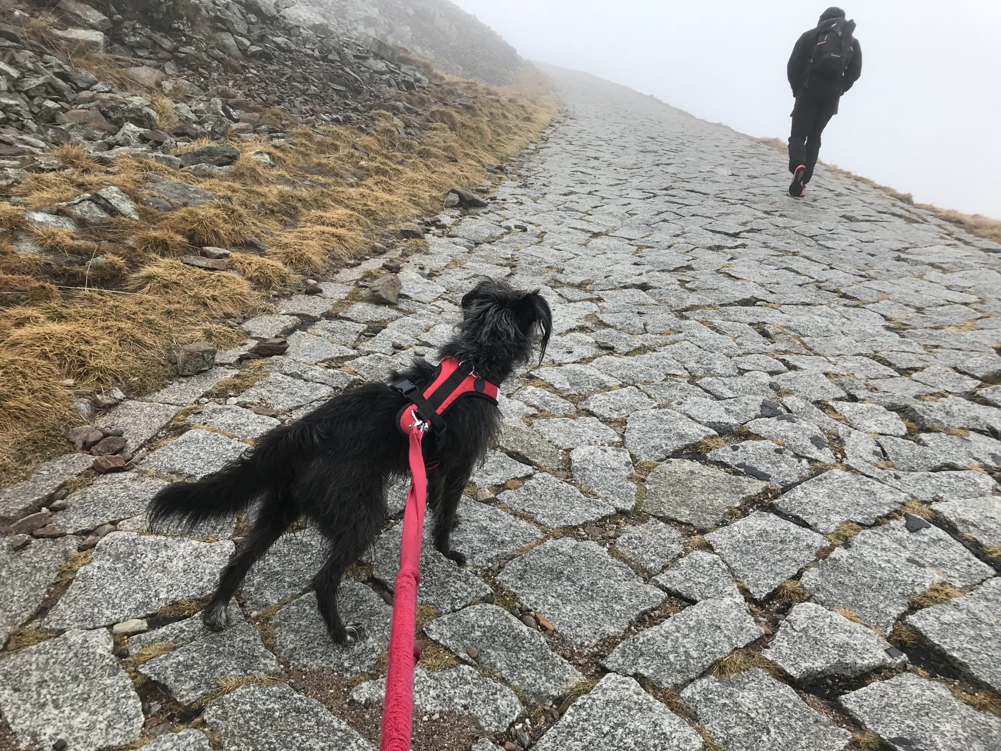 Jak się już tak pięknie rozruszaliśmy i zaaklimatyzowaliśmy, przyszedł czas na to, po co tak na prawdę przywlokłam do Pecu pufostado. Przyszedł najwyższy czas na atak szczytowy na Śnieżkę. Wyobrażacie sobie, że nigdy ale to NIGDY nie byłam z żadnym z psów właśnie tam! W głowie się nie mieści! Podjęliśmy już nawet próbę zdobycia królowej Karkonoszy od Polskiej strony ale wtedy to była zima pełną gębą i musieliśmy uznać wyższość gór.