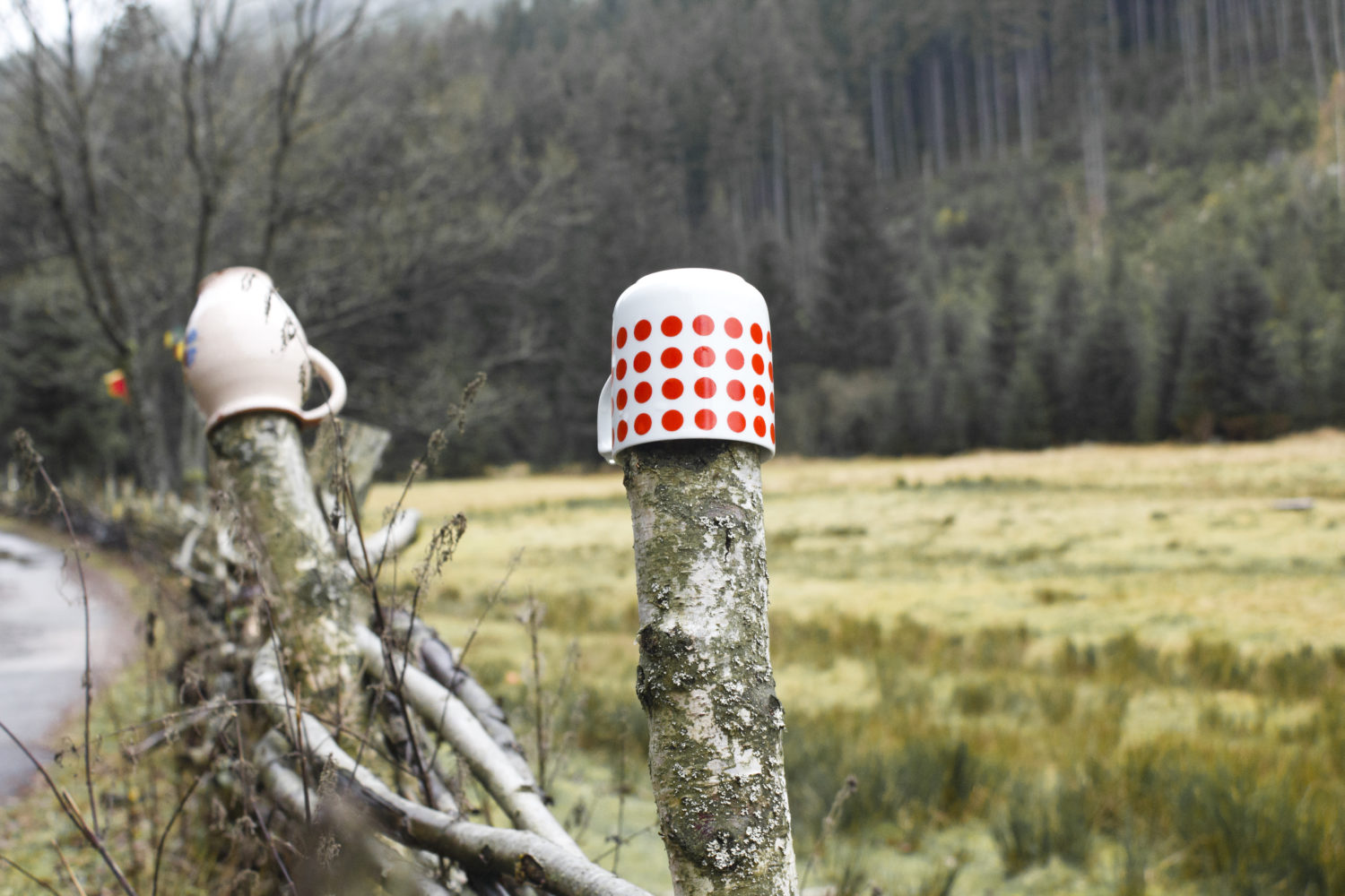 Ostatni fragment to już miejscami stary asfalt i dobrze utwardzona i utrzymana droga-piaskowa/szutrowa (?) Jakby jej nie określić materiałowo idzie się po niej dziarsko , mimo deszczowej pogody nawet Pufa przeszła bez marudzenia, bez wdeptywania w kałuże. Ogółem cała nasza trasa była bardzo czysta, nawet przy aurze która nas spotkała. Oczywiście pomijam ubabranie Bu, ale i my i Pufiak wróciliśmy praktycznie niezabłoceni. Ci którzy wędrują po niektórych partiach Sudetów wiedzą jak czasem można wyglądać po zejściu ze szlaku, tak więc tego noo 😉