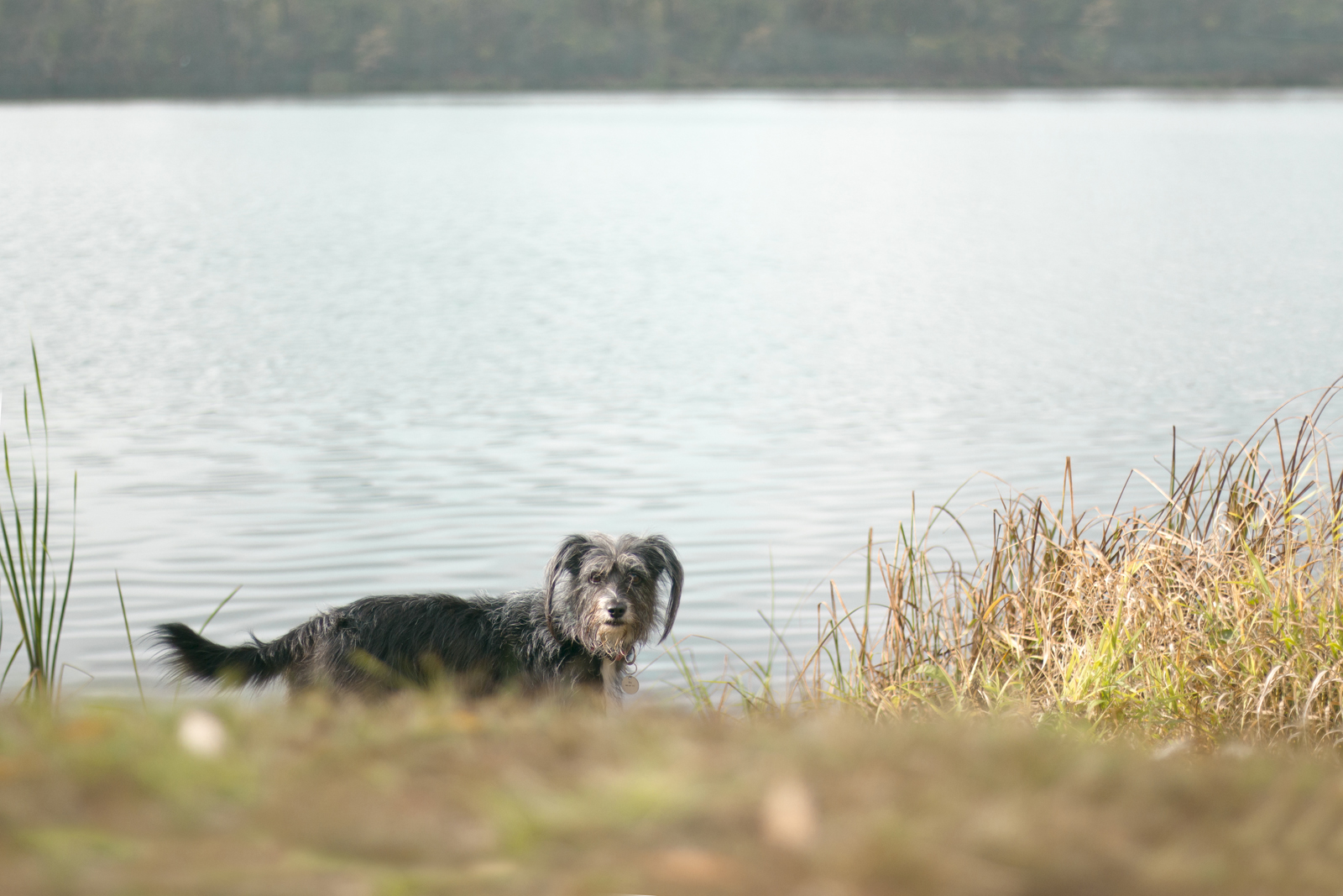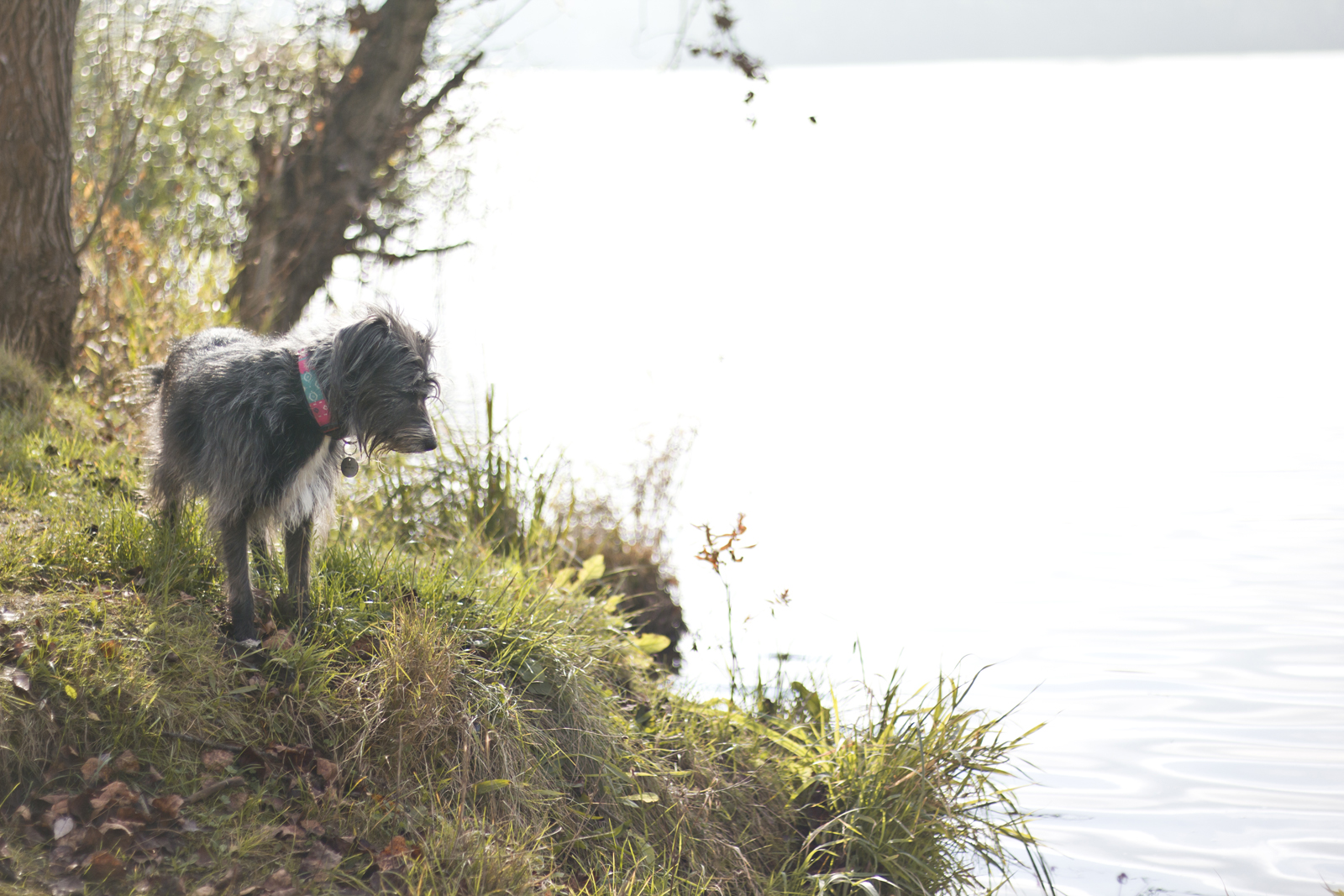 Dodreptanie do wody, startując przed mostem to dystans ok 1 km. I tu otwierają się przed nami możliwości. Można w lewo, można w prawo. Obejść Bajkały wokoło się nie da, pamiętajcie, że ma on stałe połączenie w inną wodą. Ale można przejść się i zawrócić. My tak właśnie zrobiłyśmy . Idąc w lewo przeczłapałyśmy 2 km z hakiem w jedną stronę, dochodząc aż do uroczego cypelka. Ścieżki wiodą wzdłuż linii brzegowej. Za drugim razem skoczyłyśmy tam w tygodniu, po południu. Wędkarzy nie było praktycznie w ogóle, a wszelkie zejścia do wody były nasze. A jest ich sporo i to takich jakie Bu lubi najbardziej. Lekko zarośnięte, delikatne. Można popływać, można tylko pomoczył łapki.