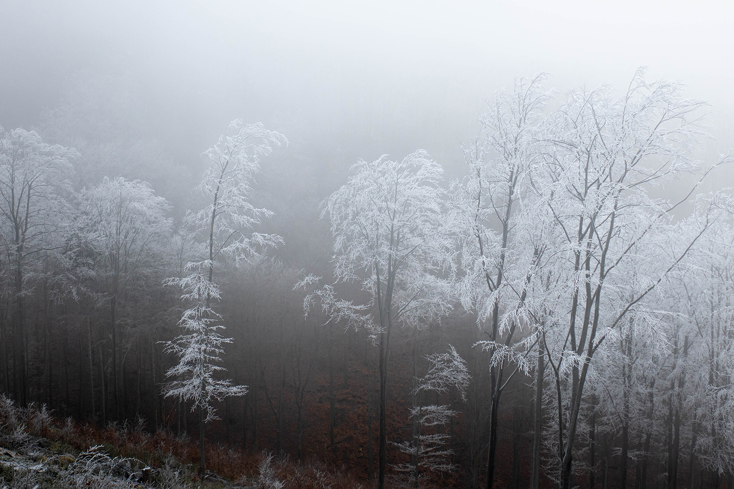Nie uraczymy tu ostrych podejść. Za to tego dnia, kiedy my wędrowaliśmy, właśnie gdzieś pomiędzy szlakami czerwonym i czarnym przebiliśmy się na magiczną wysokość zimna