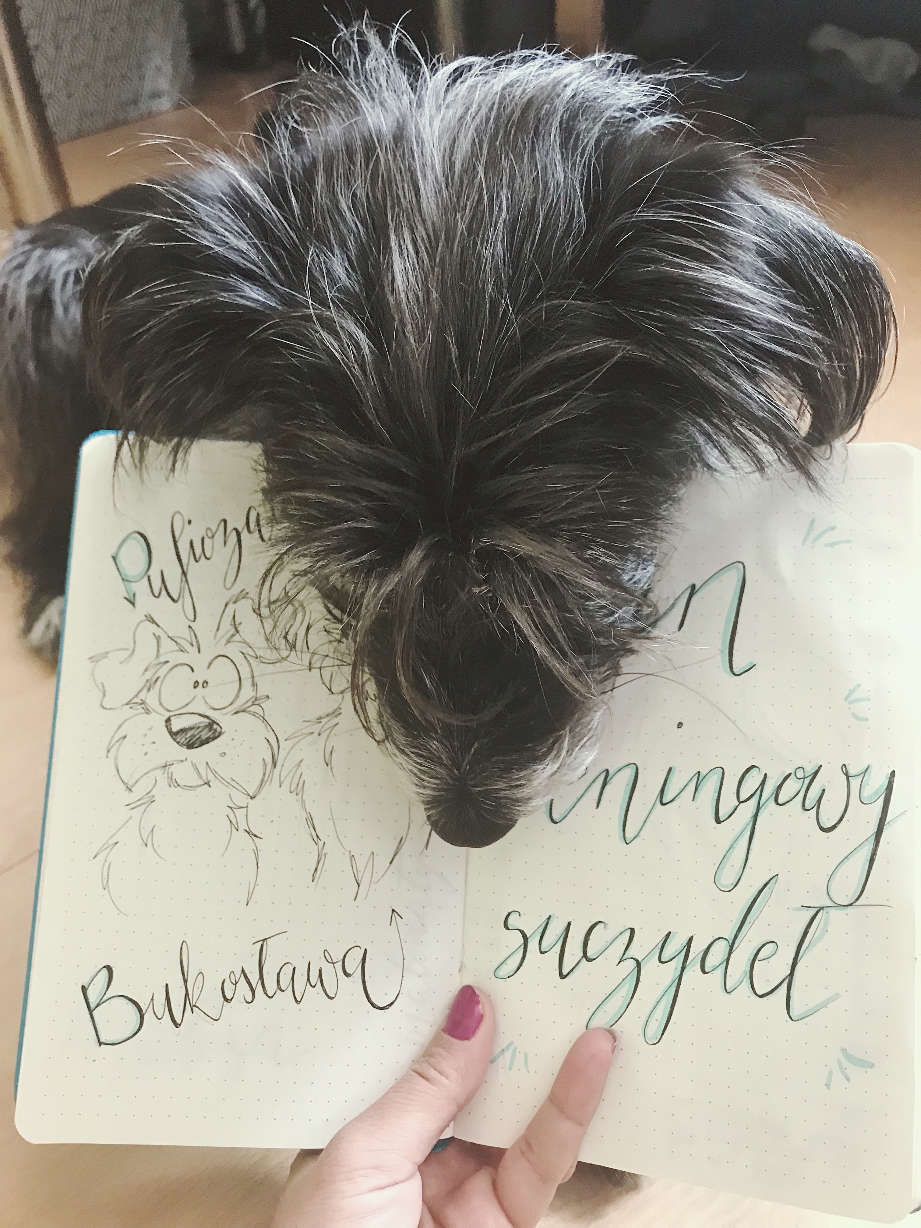 Udało mi się zapisać już dobry kawałek mojego kropkowanego zeszytu, na łamach którego ściboląc kolorowe literki, kwiatki i zdobniczki próbuję sobie ogarnąć dużą część swojej codziennej egzystencji. Jakoż że lwią część mojego wolnego czasu zajmują suczydła i one znalazły swoje miejsce w moim bujo. Wpis z inspirami psich stron w bujo znajdziecie też u My Heart Chakra, a o dzienniku treningowym u Pies do Kawadratu.
