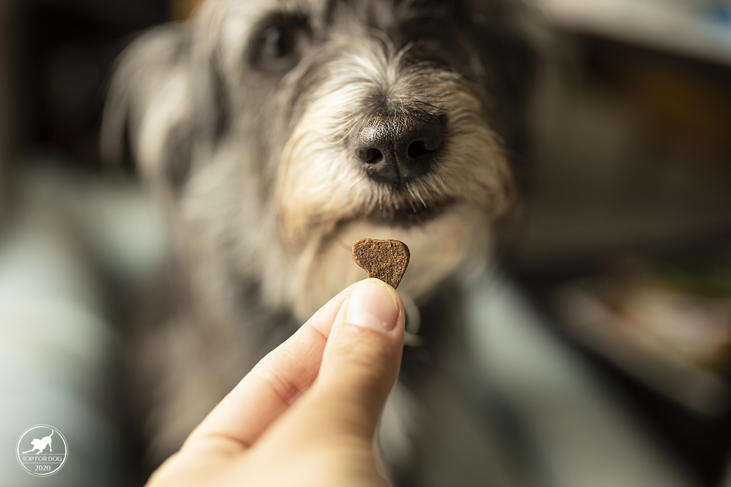 Druga grupa to tak zwane „treningówki” . Małe smaczki, używane na spacerach czy treningach. Priorytetem jest ich wielkość. Lub podzielność. Moje psy są małe, zależy mi na określonej ilości powtórzeń na przykład podczas treningu sztuczkowego. Nie chcę żeby psy najadały się 3 czy 4 smakami. Więc albo mają być małe na dzień dobry, albo musi być opcja ich podziału. Ale nie tasakiem, tylko szybko, w rękach. Na bieżąco.