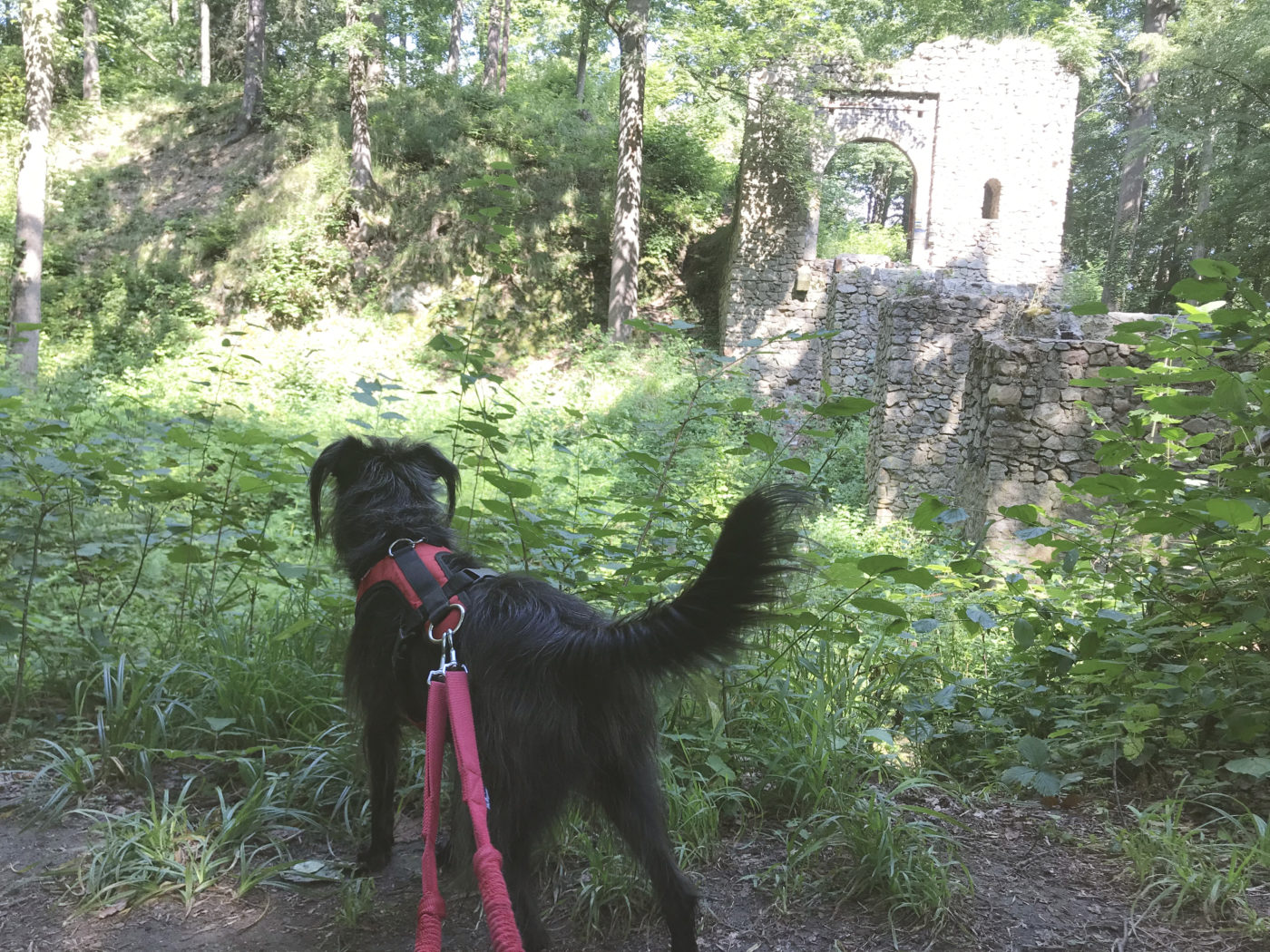 Zamek Cisy jak najbardziej nadaje się dla psów. Na jego terenie na szczęście nie było rozbitych butelek czy innych niebezpieczeństw, poza pajęczynami w krzakach wokoło Zamku. To można zaliczyć do niebezpieczeństw bardzo poważnych 🙂