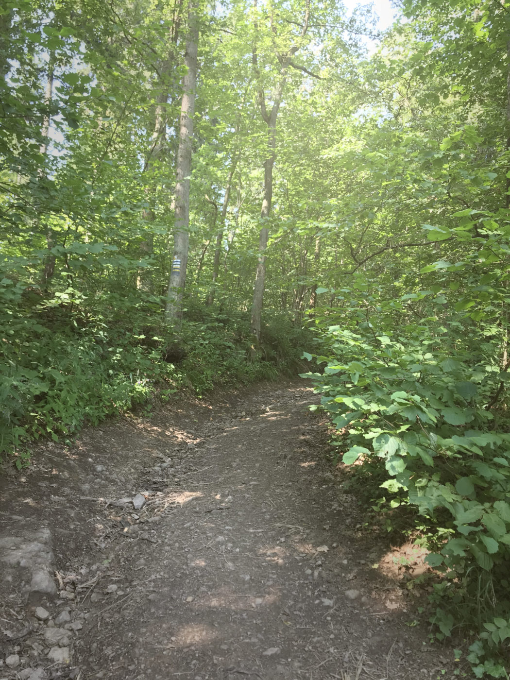 I to właśnie po zejściu z tych fajnych, charakterystycznych kładek zaliczamy jedyne mocniejsze podejście. Nie jest jednak ono bardzo długie i koszmarnie ostre, no ale posapać chwilkę można. Tak żeby nie było za nudno, bo co to za górki i pagórki bez wspinaczki.