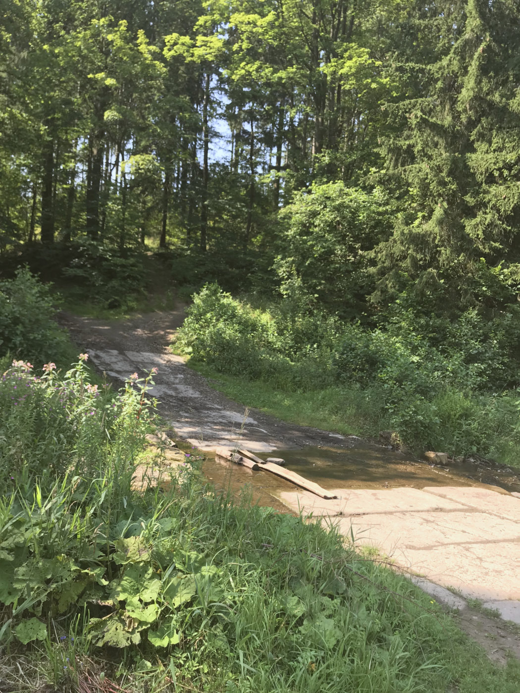 Naszą wyprawę na podbój dwóch „okrętów flagowych” tego rejonu rozpoczęliśmy od porzucenia białasa na drodze bocznej (mapka). Można podjechać dalej asfaltem jak doczytałam na facebookowym forum położonym niedawno, ale moja fobia do wąskich dróg i ewentualna wizja minięcia z kimś z naprzeciwka zaowocowała trasą dłuższą o jakiś kilometr. Zjazd w drogę prowadzącą w okolice Zamku Cisy dość łatwo znaleźć, jest tabliczka.