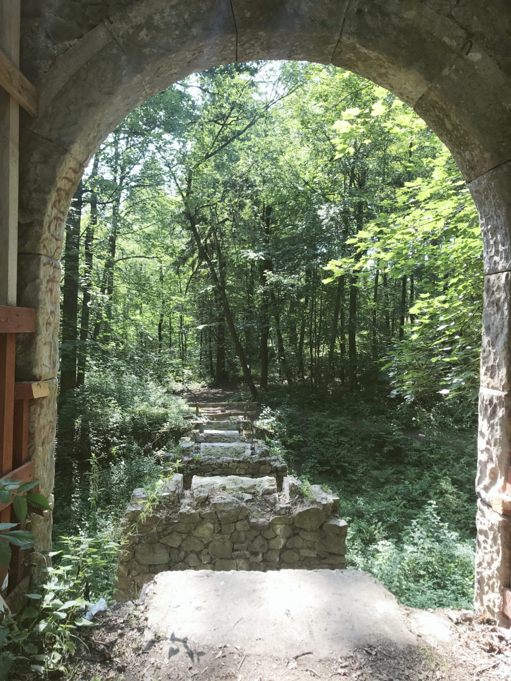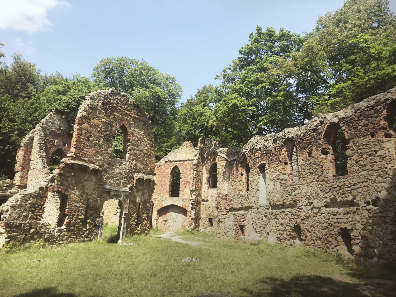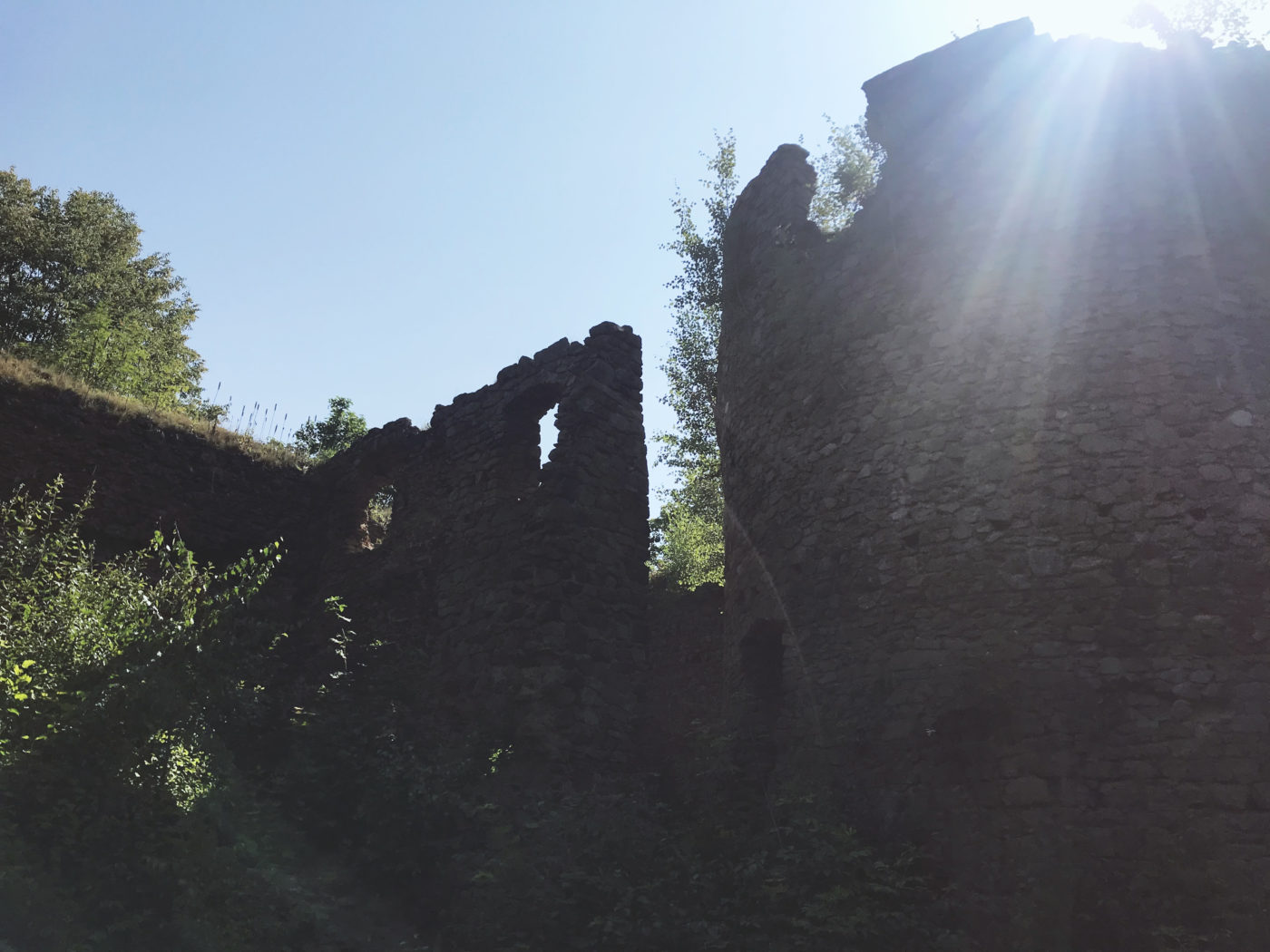 Szlak do Zamku nie jest wymagający, jest wręcz geriatrycznie spacerowy. Dreptamy szlakiem NIEBIESKIM, który potem łączy się z ZIELONYM (szlakiem Zamków Piastowskich) kierując się według oznakowania na Zamek Cisy. Jedyne utrudnienie zaczyna się przy dostaniu się na teren ruin. Mostek kiedyś był, ale się zmył, teraz trzeba jakoś go obejść, żeby znaleźć jedno z wejść. Poprowadzą Was, jak i nas, wydeptane ścieżki. To taka filozofia podróżnicza – nie wiesz gdzie iść – obczaj gdzie ktoś już coś wydeptał 🙂