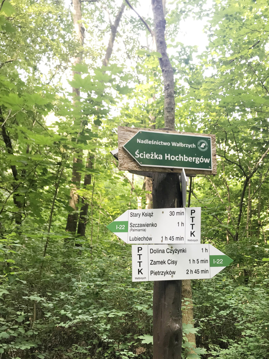 Okolice Wałbrzycha odwiedzamy dość często. Mamy blisko, a akurat te górki, nawet przy krótkiej trasie potrafią dostarczyć sporo wrażeń, zarówno wizualnych jak i fizycznych – przy kolejnym podejściu i zmianie charakteru szlaku. Tym razem też się nie rozczarowaliśmy, a ja miałam okazję udowodnić P. że wypad „na ruiny” to całkiem fajna opcja.