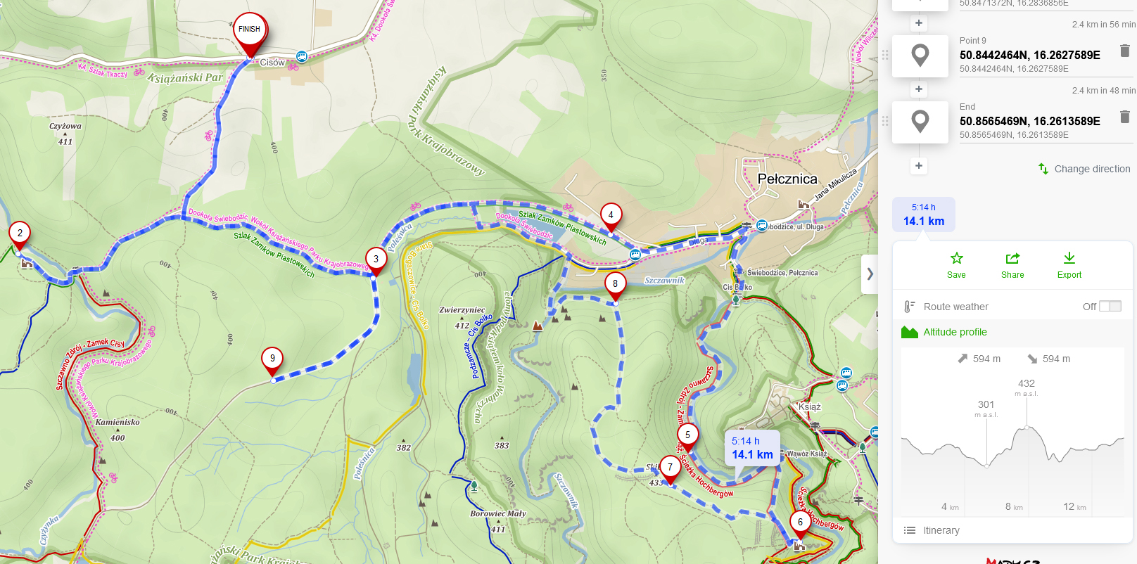 - cała trasa to około 14 km
