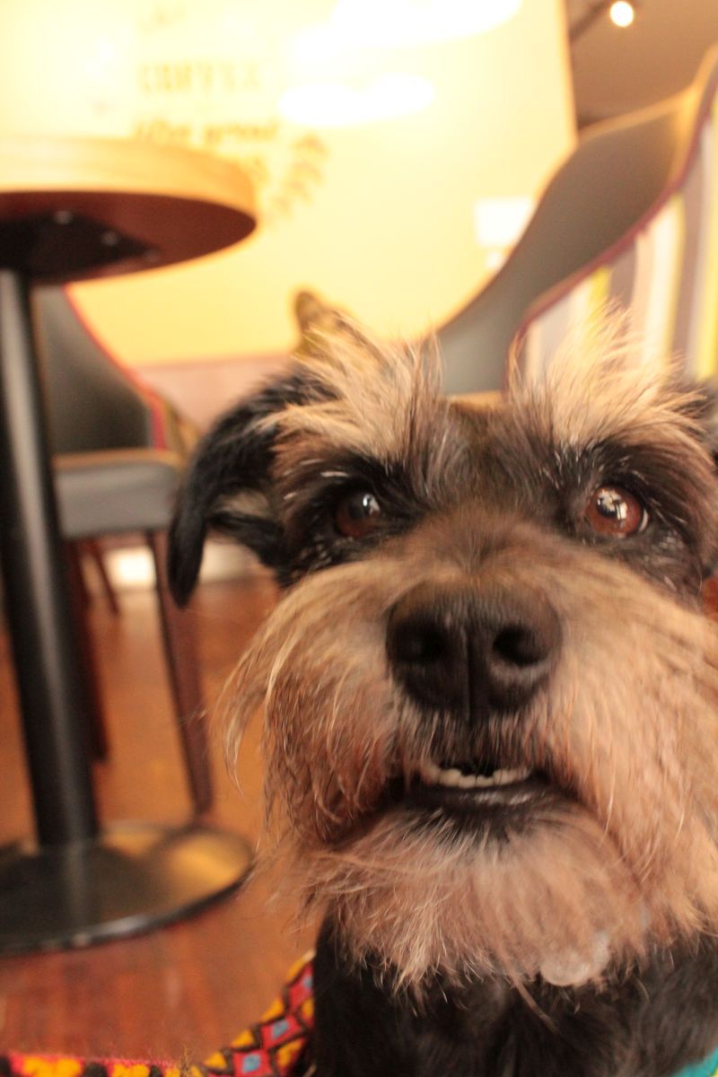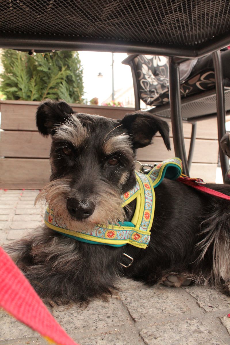 My upodobałyśmy sobie szczególne jedną miejscówkę: Daleko Blisko Cafe, kawiarnia podróżnicza, menu dla nas idealne: herbaty, ciacha i pyszne kanapki na ciepło. I micha wody dla Pufioka już na samym wejściu.
