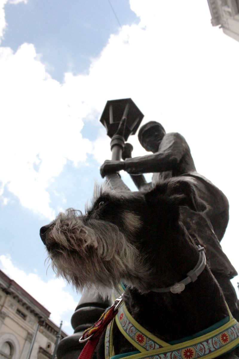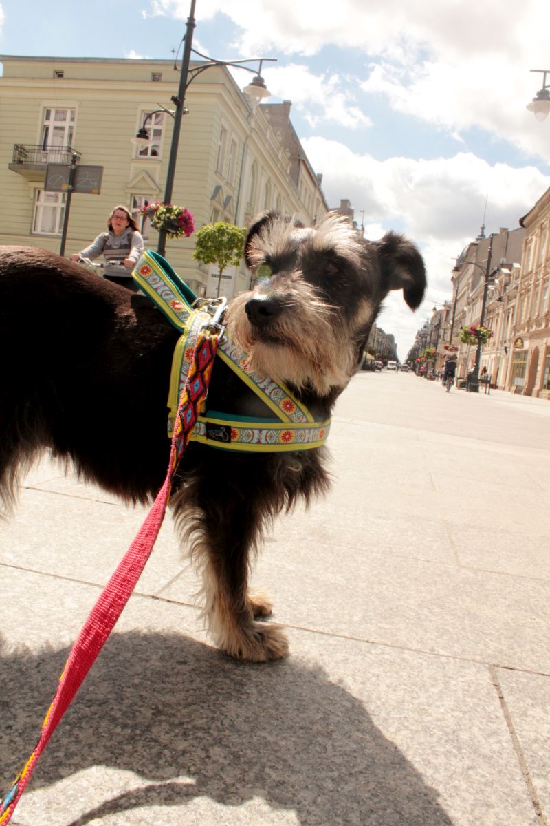 (Jeśli kogoś natchnie na zakupy na kolejny wyjazd, na początku Piotrkowskiej jest kilka sklepów z artykułami turystycznymi – ciuchy, plecaki, namioty. Wszystkie psiolubne, a w jednym Pufie szczególnie przypadła do gustu ekspozycja z dekoracją a’la sztuczna trawa)