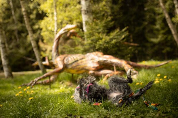 Oczywiście na terenie dinozaurów obowiązują zasady pilnowania dzieci. I ludzkich – nie ma siadania na figurach , jak i psich- kupkanie ale jak dla mnie i sikanie. Nie pozwalam Bu na obsikiwanie eksponatów itd. Tak samo jak na siki na kołpaki aut . Jeśli chcemy jako psiarze być wpuszczani na różne zwiedzania, szanujmy miejsca i innych wokoło.