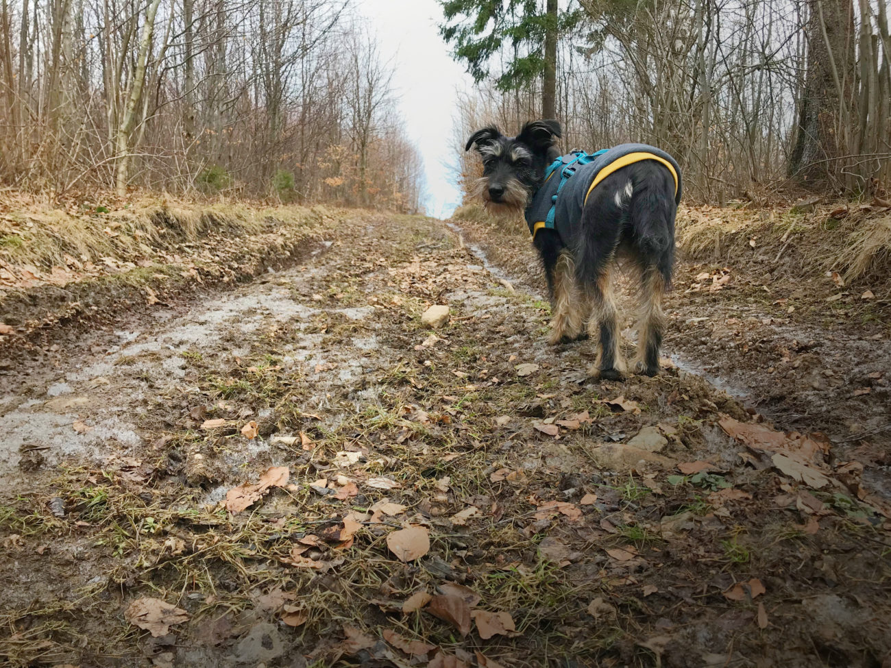 Stąd ruszyliśmy trochę ścieżkami trochę „smyrając się ” po ścieżce dydaktycznej przez szczyt Polanka. Fragment dojścia to przejście przez rozległe łąki oraz las. Szansa na spotkanie zwierzyny bardzo duża-pieseczki na smyczałki. My idąc na górę i wracając widzieliśmy duże stado saren. Bu też widziała i dlatego zawsze drepcze na smyczy 😉