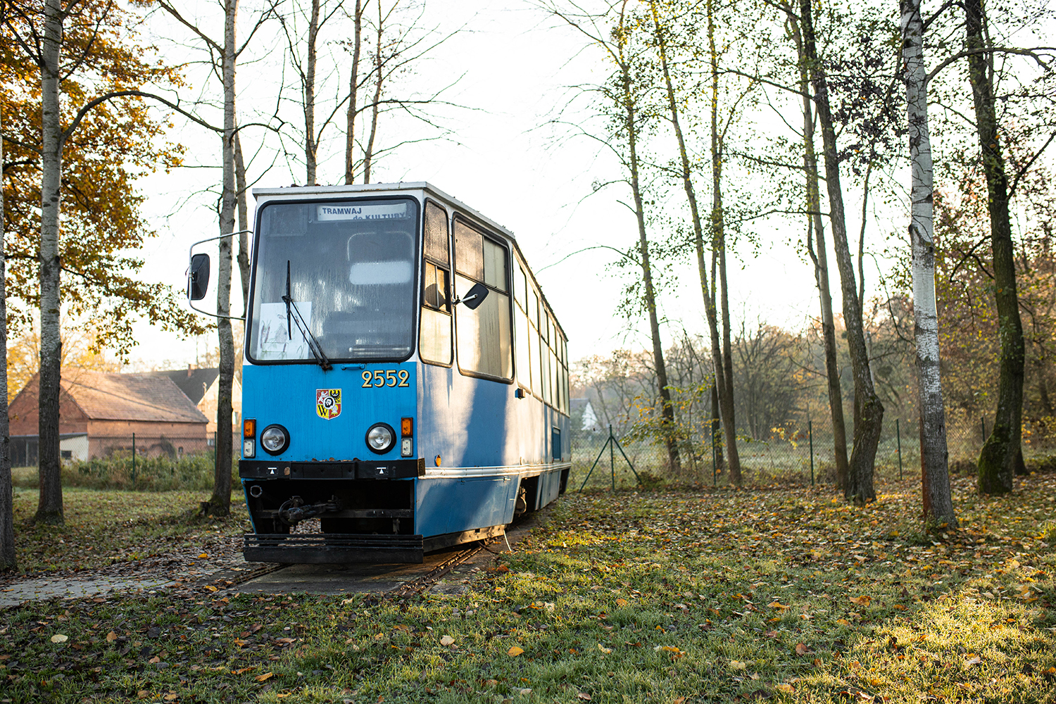 Przechodząc ścieżką dydaktyczną fundujemy sobie spacer przez las, spokojną ścieżką z szansą na mniej ludzi. Prowadzi nas ona obok wiaty turystycznej i .. tramwaju. Kiedy byliśmy tu pierwszy raz musiałam się poważnie zastanowić czy na bank jestem dobrze obudzona, linia tramwajowa w Rudzie Milickiej jakoś mi nie pasowała. Szczególnie, że tramwaj to taki nasz, wrocławski, niebieski. Jednak wagon, który kiedyś wchodził w skład miejskiego taboru, aktualnie pełni rolę punktu przenoszącego nie pasażerów a wiedzę i krainy- mieszkańcy mogą w nim wypożyczyć książki. Każdy sposób na szerzenie czytelnictwa jest doskonały. Oczywiście punkt aktualnie działa według pandemicznych wytycznych.
