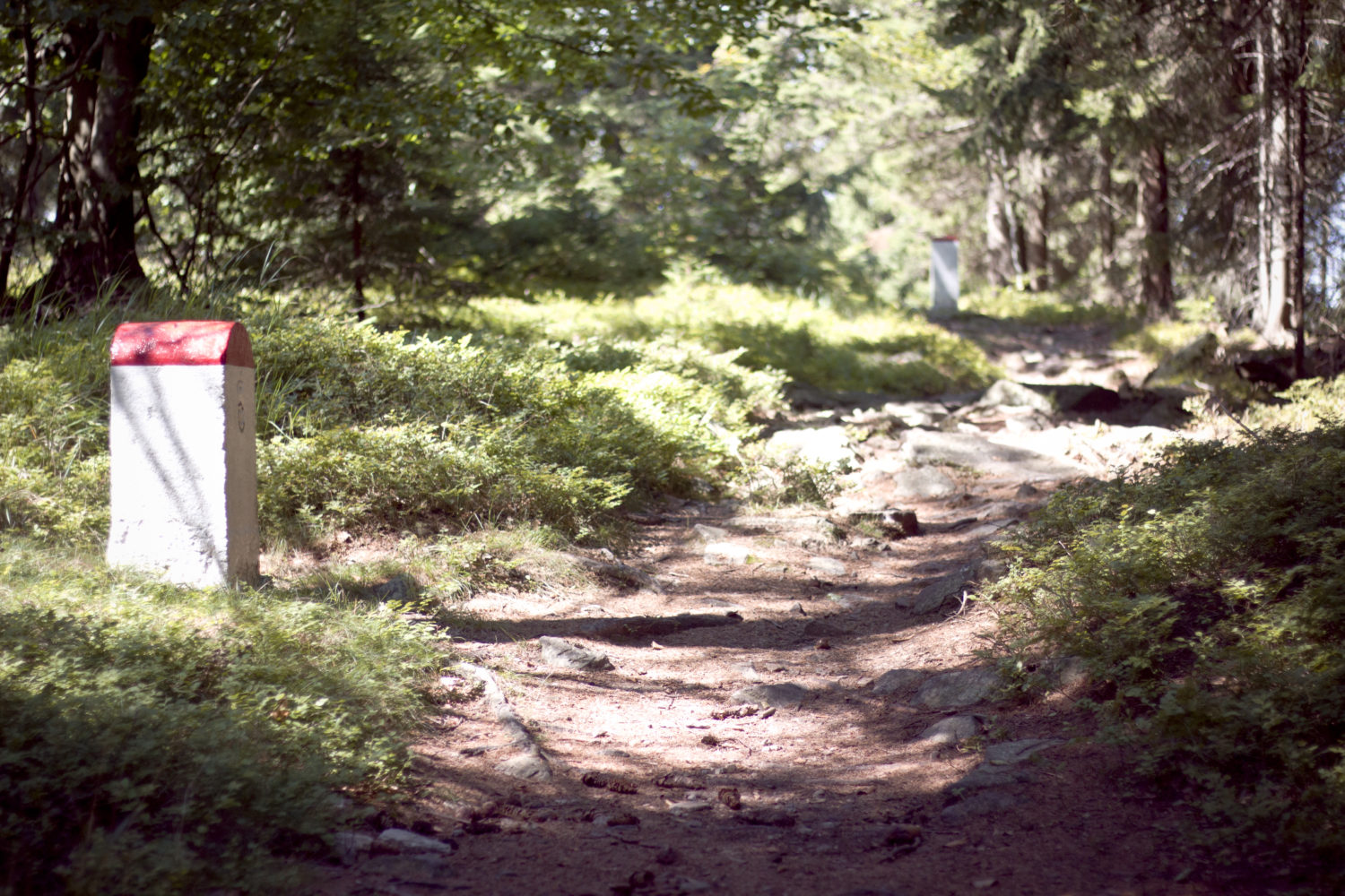 Przyjemny, szeroki, dobrze oznakowany. Przechodzi cały czas wzdłuż granicy, wiec nawet bez oznaczeń na drzewach mamy słupki graniczne. Mijamy ostre zejście, którym na szczęście nie musieliśmy później podchodzić- uffff Przełęcz Różaniec, ostre podejście długą prostą, które znają wszyscy bywalcy Pucharu Polski w dogtrekkingu, Krowią Górę, a na koniec szczytujemy na naszym punkcie docelowym czyli na Borówkowej