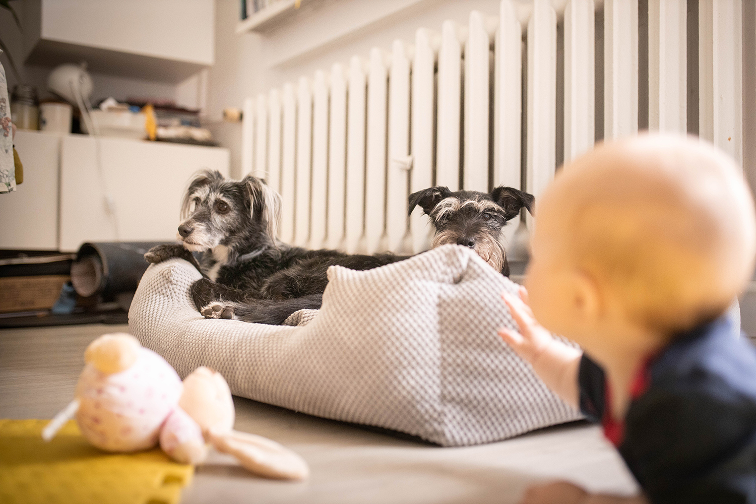 W macierzyństwo się nie wchodzi. Wchodzić to można do mieszkania , po pracy. W posiadanie psa sie wpada. Mam na myśli to pełne posiadanie, z partnerstwem z psem- wędrówkami z nim, uczeniem, zabawą, pogłębianiem wiedzy.Za to w bycie rodzicem się wdeptuje.Po same kokardy. Grzęźnie się w euforii zmieszanej z przerażeniem i zagubieniem. Z psem jest stabilnie. Dość łatwo o rutynę. Jeśli tylko nam na tym zależy poznajemy nasze Futro, uczymy się siebie nawzajem. Z odpowiednią dozą empatii i rozumu stworzymy zgrany team, dostosujemy nasze plany do możliwości zwierza. On odwdzięcza się towarzyszeniem nam, byciem z nami. Z Suczami udało mi się machnąć calkiem miłą relację. Znam ich problemy, szanuję potrzeby, nie pcham w sytuacje w których one sobie nie poradzą.