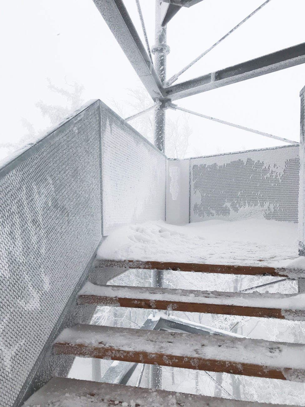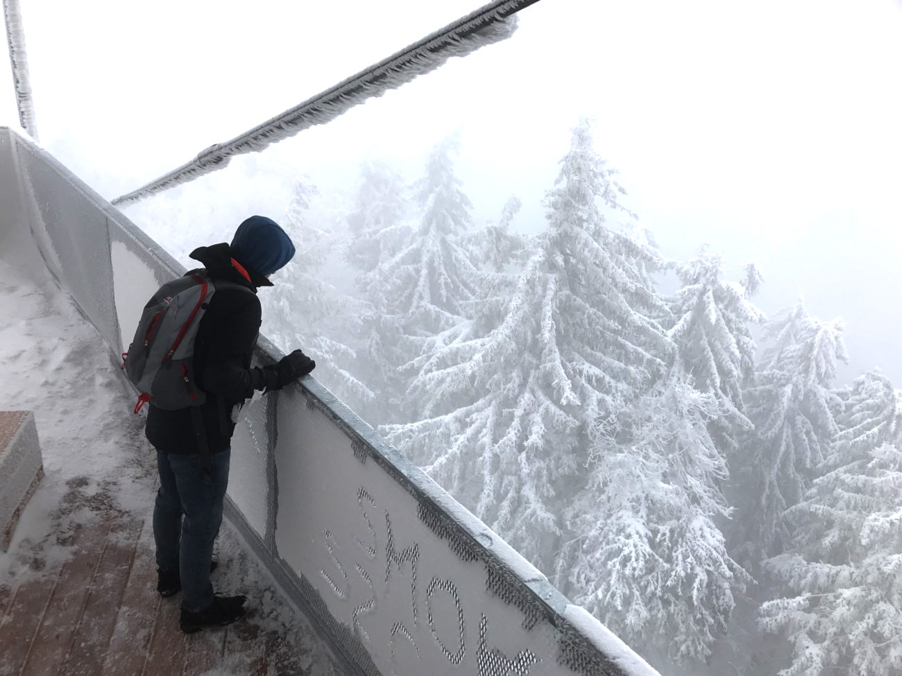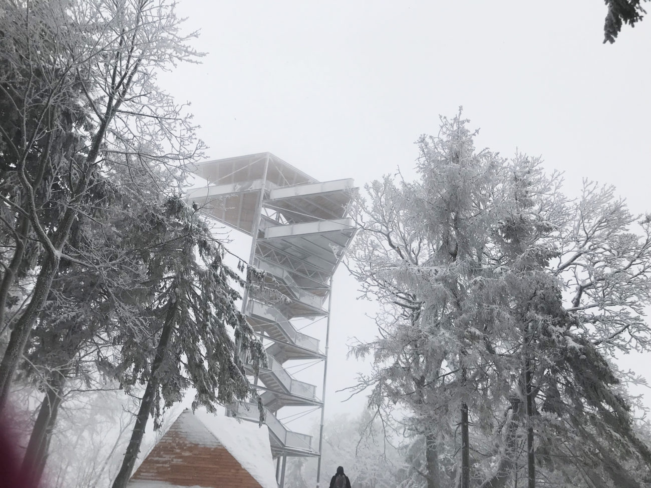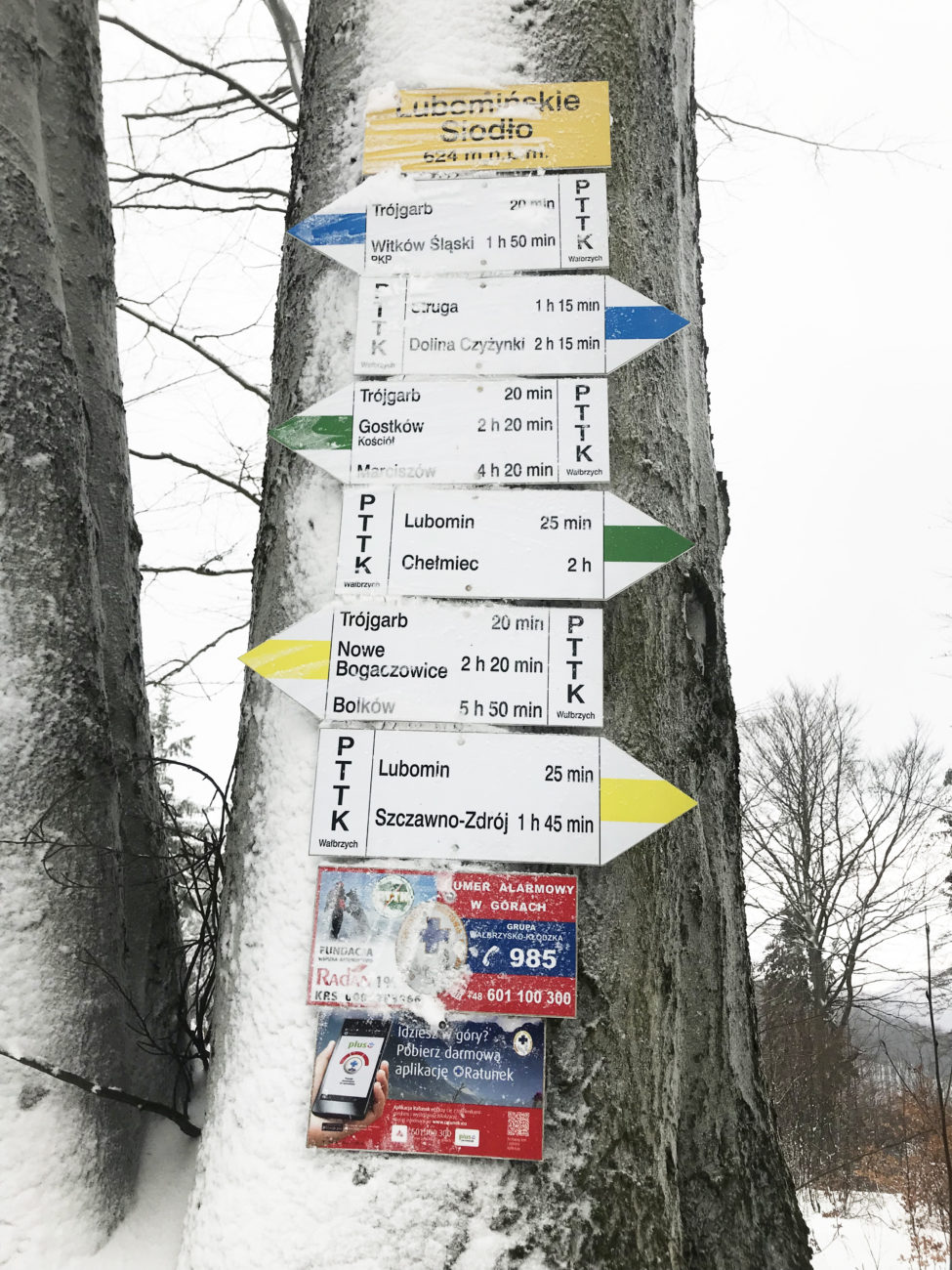Kiedy więc 29 grudnia otwarto kolejną, tym razem na szczycie o nazwie Trójgarb niecierpliwie czekałam na okazję żeby się tam wgramolić. Teoretycznie w naszym zapsionym przypadku najbardziej lubię poczekać aż pierwsza fala fascynacji nową miejscówką przejdzie, tłumy zmaleją, ale kiedy zachciało nam się zimy a pogoda zapowiadała się.. średniawo pomysł na Trójgarb wydawał się idealny! Oczywiście wpisałoby się to w moje szczęście do widoków z wież widokowych  a raczej ich braku, ale przecież kto zaprzeczy że pogoda w górach zmienną jest, a to że na dole jest średnio przecież nie oznacza że na szczycie chmurzyska nie rozstąpią się , dając cudny widok? No właśnie 😀