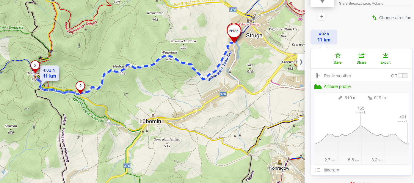 • szlak niedługi, przyjemny ale z kilkoma podejściami i zejściami , jak to w górach Wałbrzyskich