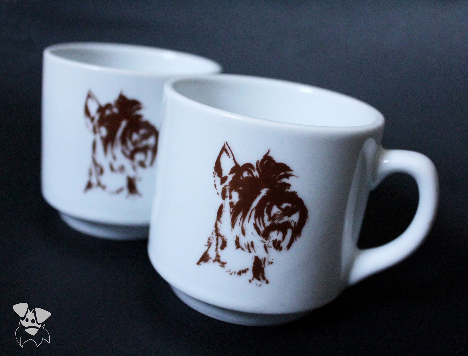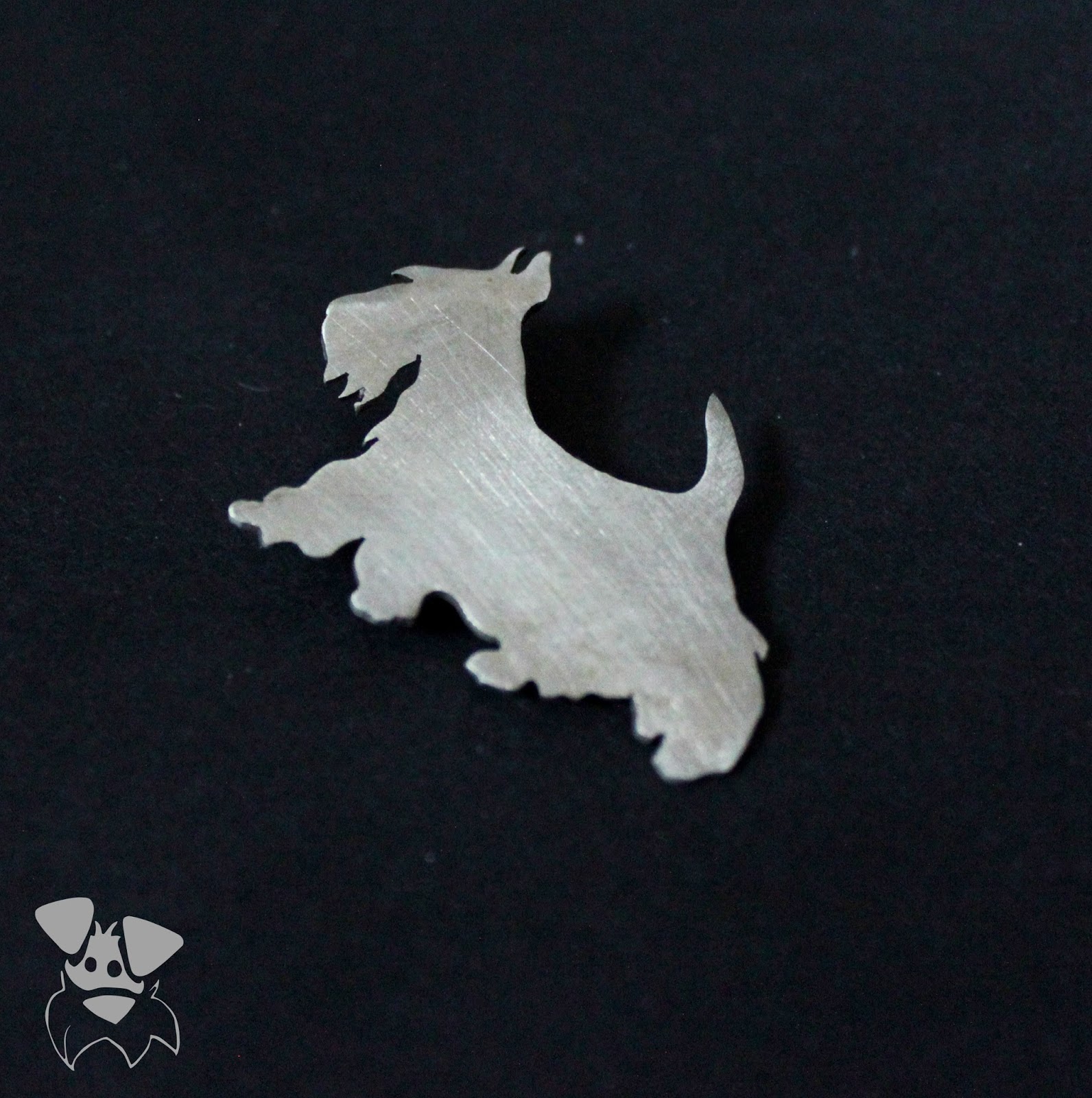 (Tak jak wspominałam motyw sznaucera jest rzadkością, zazdrościmy właścicielom wszechobecnych buldożków francuskich, stąd dostałam właśnie taką brożkę. Utrzymuję cały czas, że to nie terier szkocki, a Pufa przed odchudzaniem)