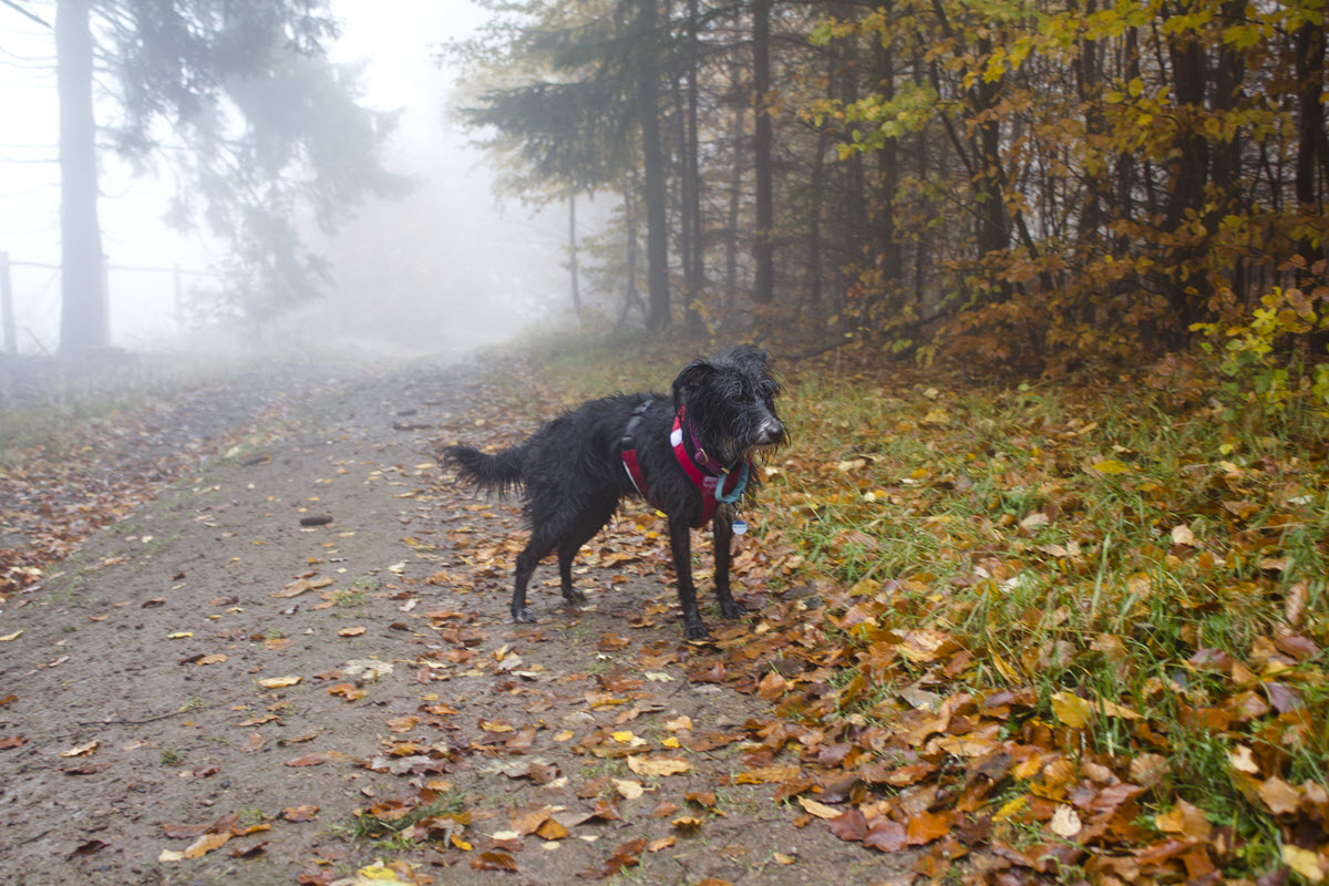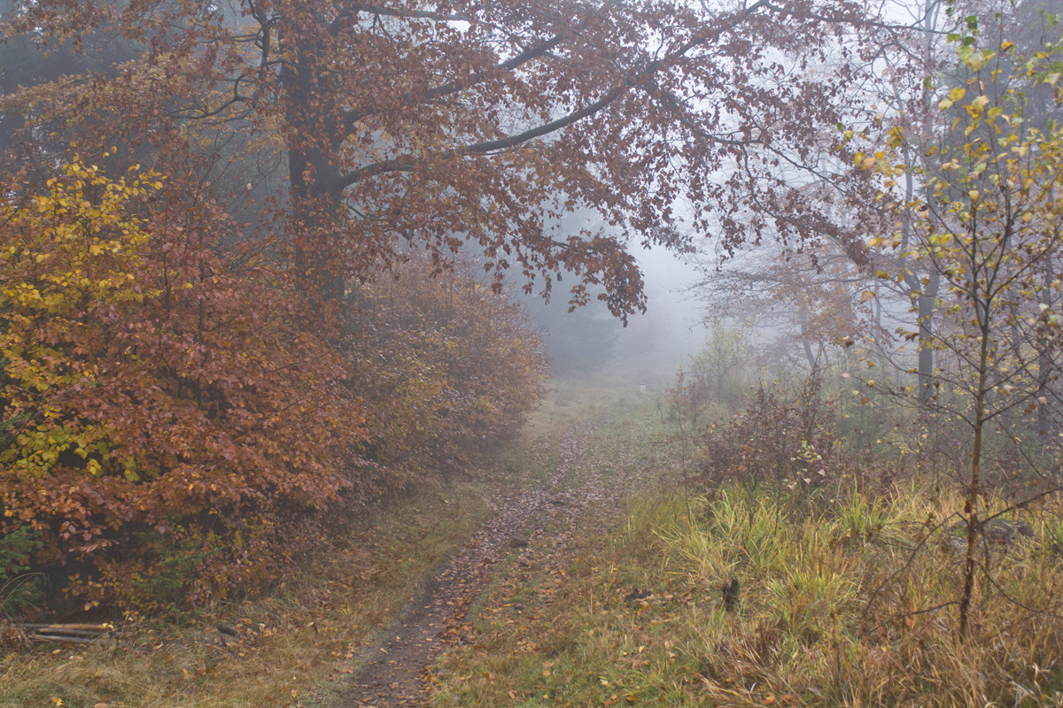 Jak już zostało wspomniane, tereny na których przyszło nam spędzić kilka dni należą do po prostu urokliwych. W związku z tym: w góry wybraliśmy się również w dzień wyjazdu, przecież nie można marnować dnia mając za oknem szlak i idealną (prawie) jesień, ze wszystkimi bajerami jak kolory, liście, mgły poranne i mżawę przez całą drogę – nic tylko zapakować plecak, awaryjny kapok Pufioka i dreptać przed siebie! Tak więc ja natrzaskałam zdjęć w tej klimatycznej pogodzie i dla własnej radości mam zamiar raczyć widokami wszystkich wokół.