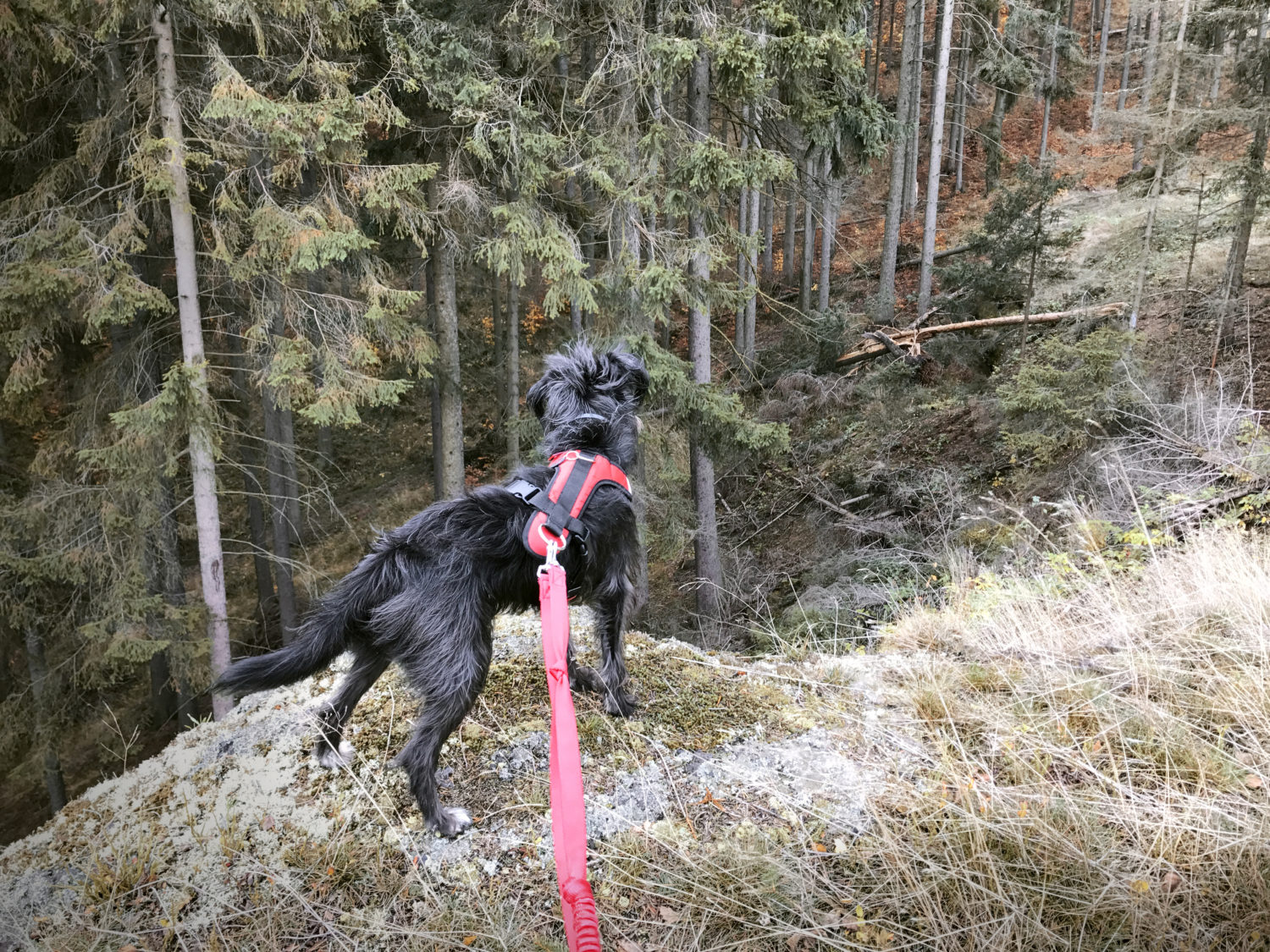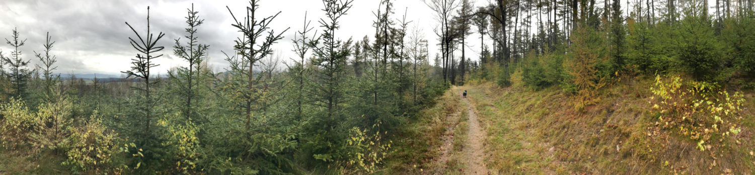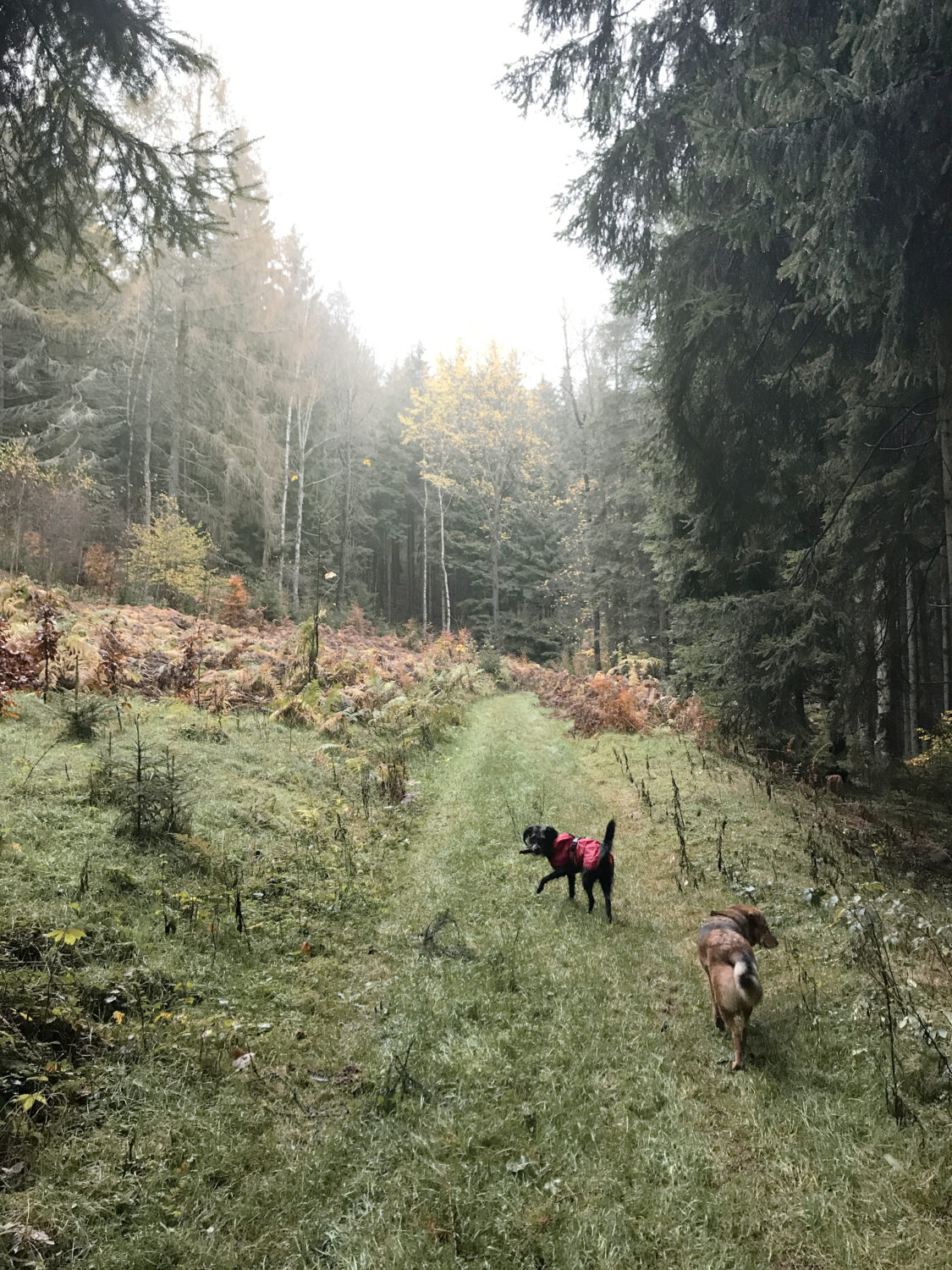 Podobnie jak ostatnio, wyruszyliśmy do Janovicek, na Czeską stronę, w ramach spaceru zdobyć to co u naszych południowych sąsiadów lubię najbardziej – jedzenie <3 Przejazd samochodem z Głuszycy do Janovicek to prawie godzina. Pieszo 30 minut. Jedyny minus stanowią godziny otwarcia – listopadową porą mogliśmy liczyć tylko na weekendowe dożywianie, z którego skrzętnie korzystaliśmy. Odwiedziliśmy dwie restauracje – Penzion Zamecek i Vyhlidka, obie psiolubne, więc były one dla nas fajnym pit-stopem na trasie spaceru po okolicy. Jak widać na zdjęciu – podłoga też propsia bo niepłytkowana, więc Pufa też chętnie skorzystała z okazji na drzemkę i dosuszenie się po dreptaniu w perfidnej mżawce.