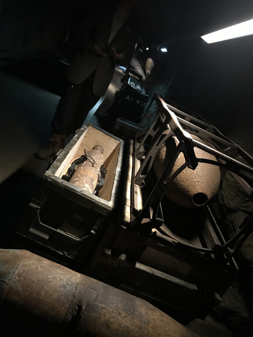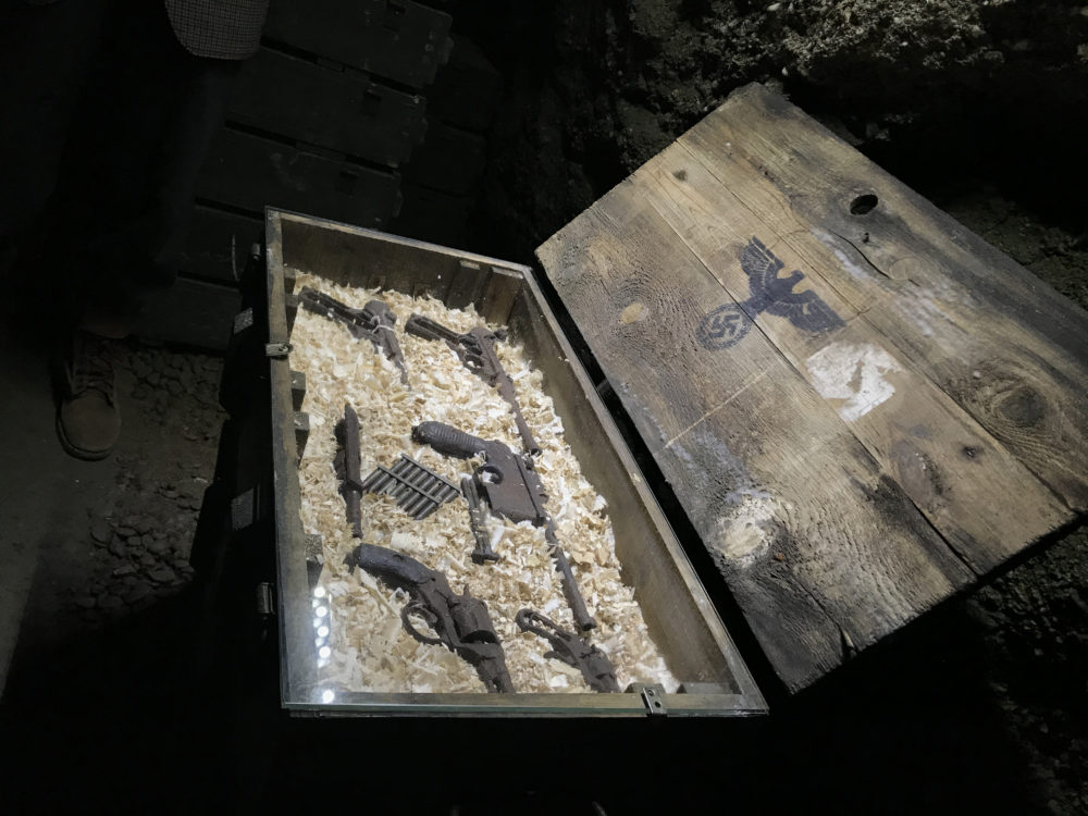 Za 17 zł za normalnych i za free za futrzaki przenosimy się w czasu wojenne, schodzimy do podziemi, poznajemy pełną tajemnic historię, taką jak lubię najbardziej – sekrety, spiski… Prowadzi i opowiada przewodnik – ubrany w adekwatny strój młody człek, z ogromną wiedzą. Od razu widać, że mamy do czynienia z pasjonatem, a takich lubię najbardziej. Chyba powoli kończą się czasy przynudzających przedników, przyprószonych kurzem, niczym eksponaty, o których mówią. I bardzo dobrze! Teraz nie można powiedzieć, że nie chce się iść do muzeum bo nudno 😀