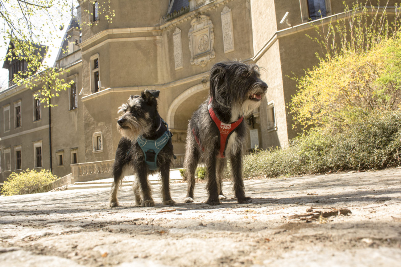 Piesowóz przemieszczamy sobie tu i ciśniemy na przechadzkę weekendową. Szkoda, że nasz strój, bardziej leśny niż pałacowy średnio pasował do idyllicznego spacerku zakochanych z pieseczkami, nóżka za nóżką, ale przecież taka duperelka nas nie zrazi!