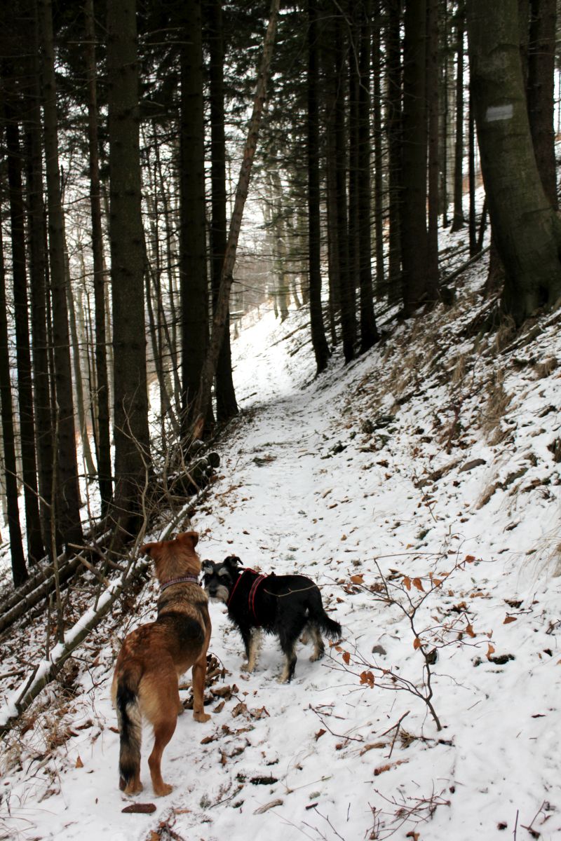(Spod schroniska ruszyłyśmy niebieskim szlakiem w kierunku Skalnej Bramy. Z małymi, krótkimi wyjątkami cała nasza wyprawa to raczej lekkie podejścia z ładnymi widokami. Piesy zadowolone, my też, szczególnie kiedy przed nami przez ścieżkę przebiegły 2 sarny. Dzicz jak się patrzy)