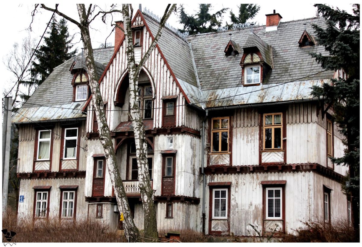 (Głupio się przyznawać, ale co tam. Sokołowsko kojarzyło mi się z pipidówą, w której nawet kawy się nie da napić. A tu niespodzianka! Zaniedbana miejscowość, to fakt, ale po przyjrzeniu się zabudowie można doznać szoku. Przepiękne budynki, każdy inny, projektowane przez leczących się tu ongiś architektów, artystów – Sokołowsko było uzdrowiskiem dla chorych-płucnych. Serce się tylko kraje że takie perełki popadają w ruinę. My już snułyśmy wizję jakby mogło być cudnie gdyby odnowić, zainwestować, a miejsce stało by się modnym miejscem wypadów. Nieodparcie kojarzy mi się z Nikiszowcem, ale przez otoczenie gór i różnorodność zabudowy, chyba mogło by go przebić…:) )