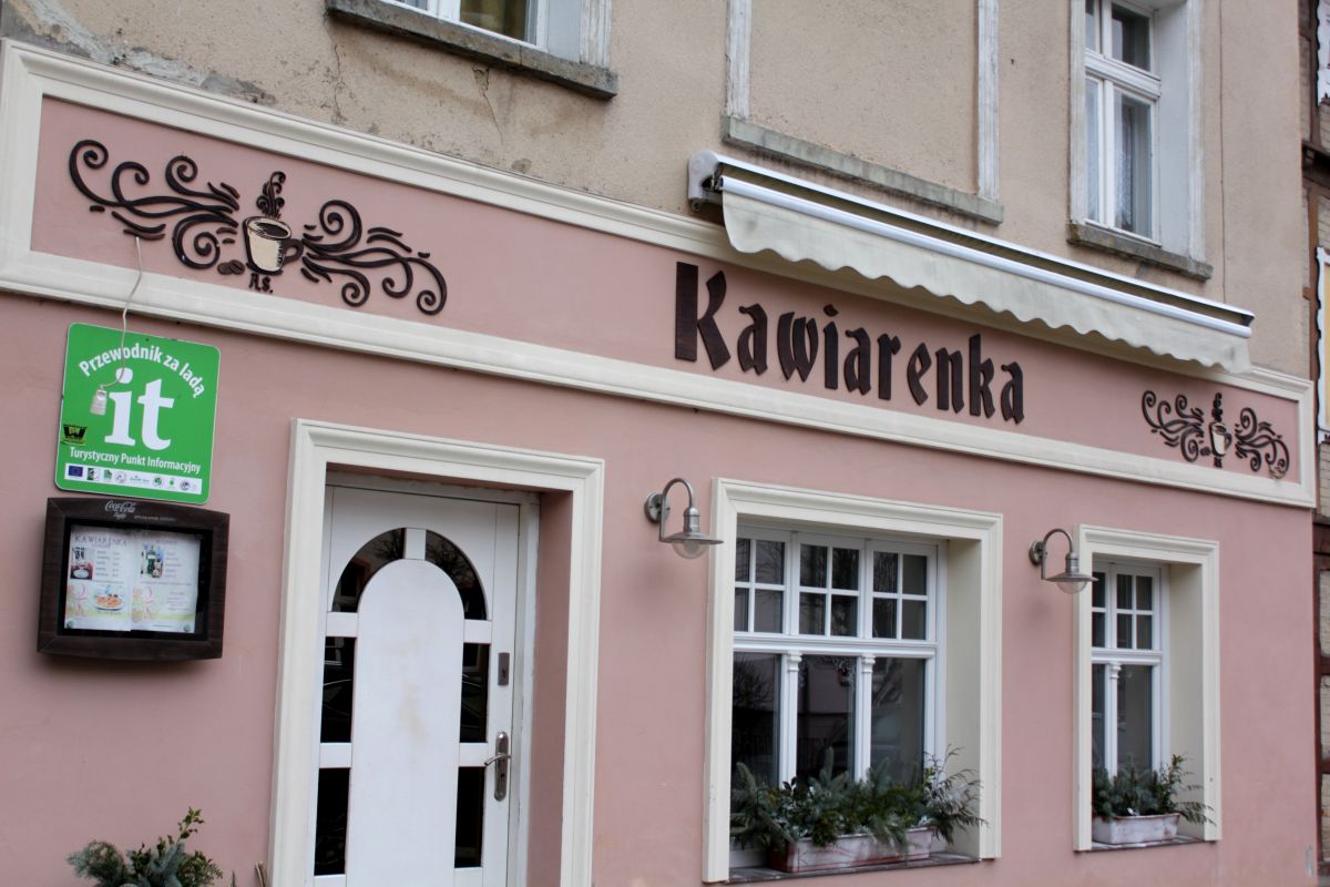 (Wspominałam brak kawki? Wycofuję! W samym centrum, w odnowionej kamieniczce jest Kawiarenka. Niech nikogo nie zmyli nazwa – my zjadłyśmy po makaronie (mmmm, pycha!), na ciasto bezowe zabrakło niestety miejsca w trzewiach, piesy mile widziane! Jest przytulnie a obsługa zasługuje na miano przemiłej. Polecam! Przy okazji zgarnęłyśmy kilka mapek, ulotek o Sokołowsku w tym jedną z mini-grą terenową. Oczywiście nie miałyśmy czasu się w to zabawić, ALE! Przecież mamy zamiar powtórzyć wypad w te tereny – będzie i gra i ciacho :D)