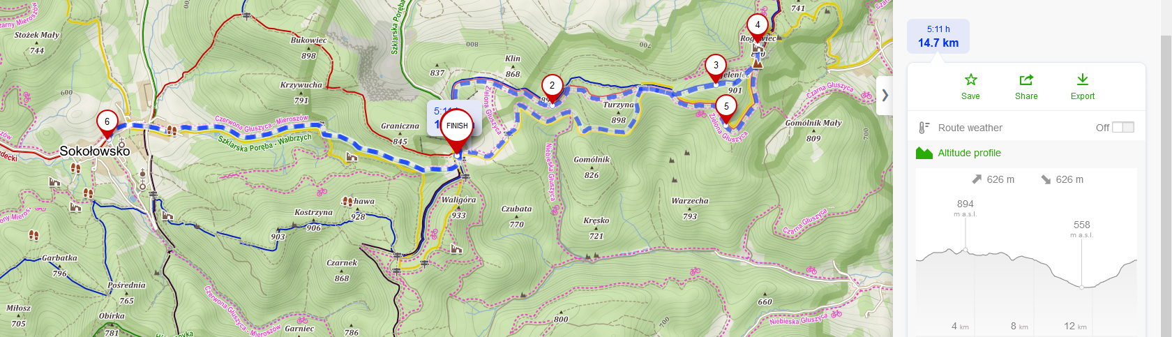 Nasz trasa to ok 15 km. Poniżej screen mapki a wersja do kliknięcia o TUTAJ