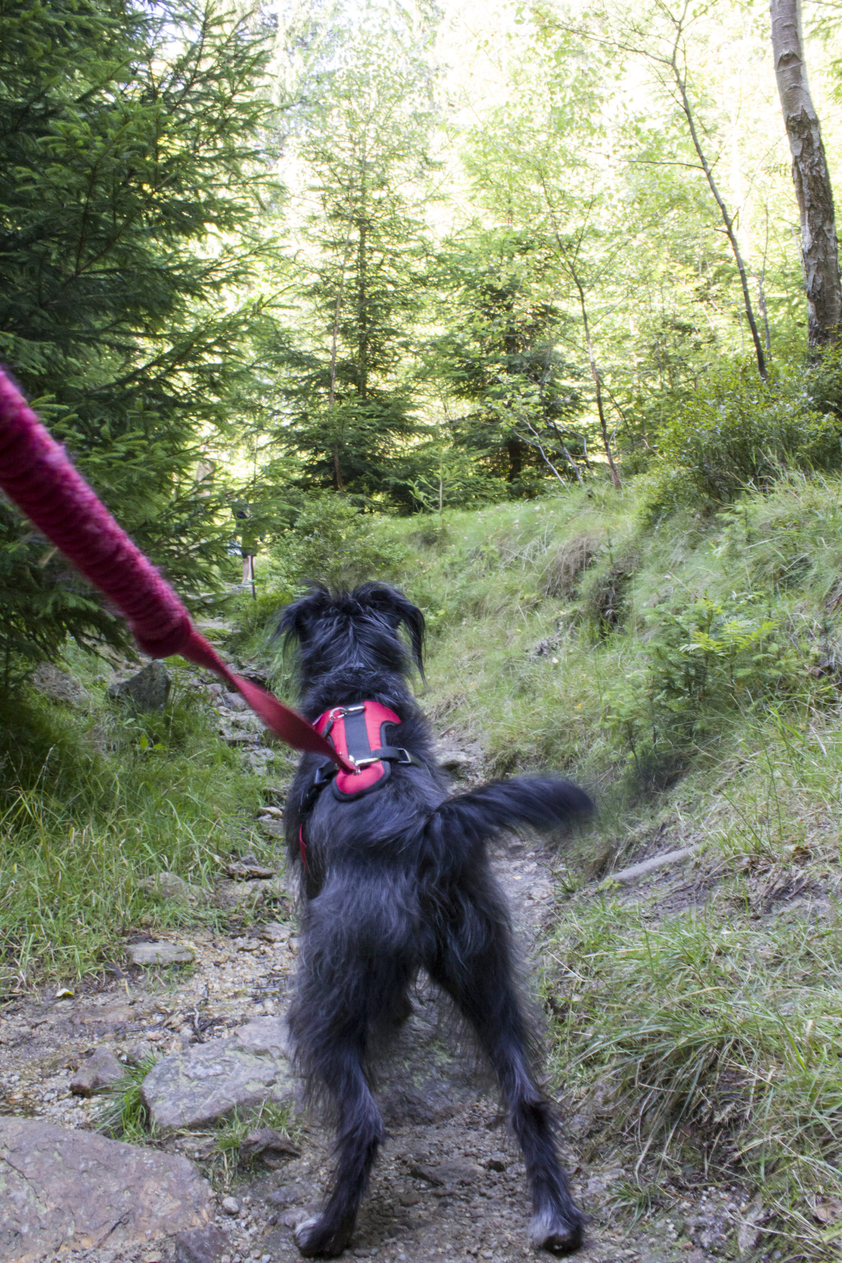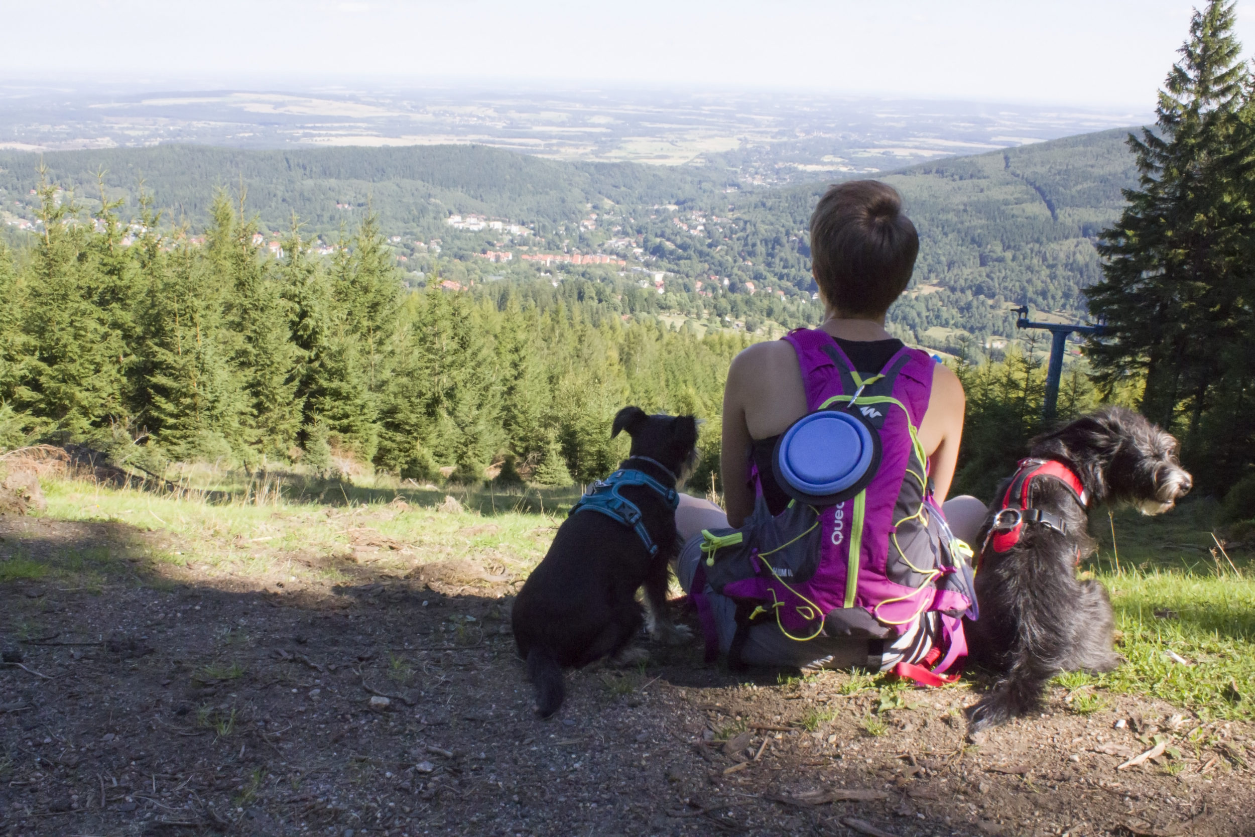 Rozruch na Smrku był, więc dopóki prognozy pogody zapowiadały znośną pogodę – im niższa temperatura tym, w naszym wypadku, lepsza, nie było co czekać tylko zrealizować jeden z podstawowych punktów do realizacji na wyjeździe, a mianowicie dotrzeć do Chatki Górzystów. O tym miejscu trochę się naczytałam na grupie FB, o mitycznych naleśnikach z jagodami nie wspominając. Cóż. Nie ma mocnych, trzeba tam się też doczłapać i dalej sprawdzać jak to jest z tym zakochiwaniem się w Izerach. Jako że nadal był to nasz urlop, więc czas raczej relaksacyjny, daleki od tempa chodzenia po górkach np. w trakcie zawodów dogtrekkingowych, więc i trasę postanowiliśmy obrać turystyczną, po której ja nie będę wyglądać jak zasapany burak gotowany na parze.