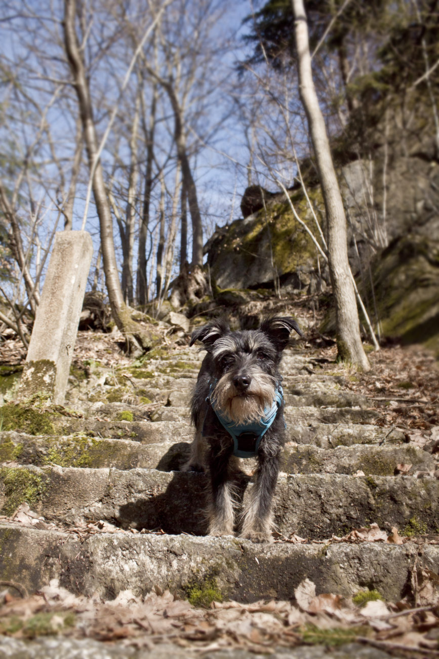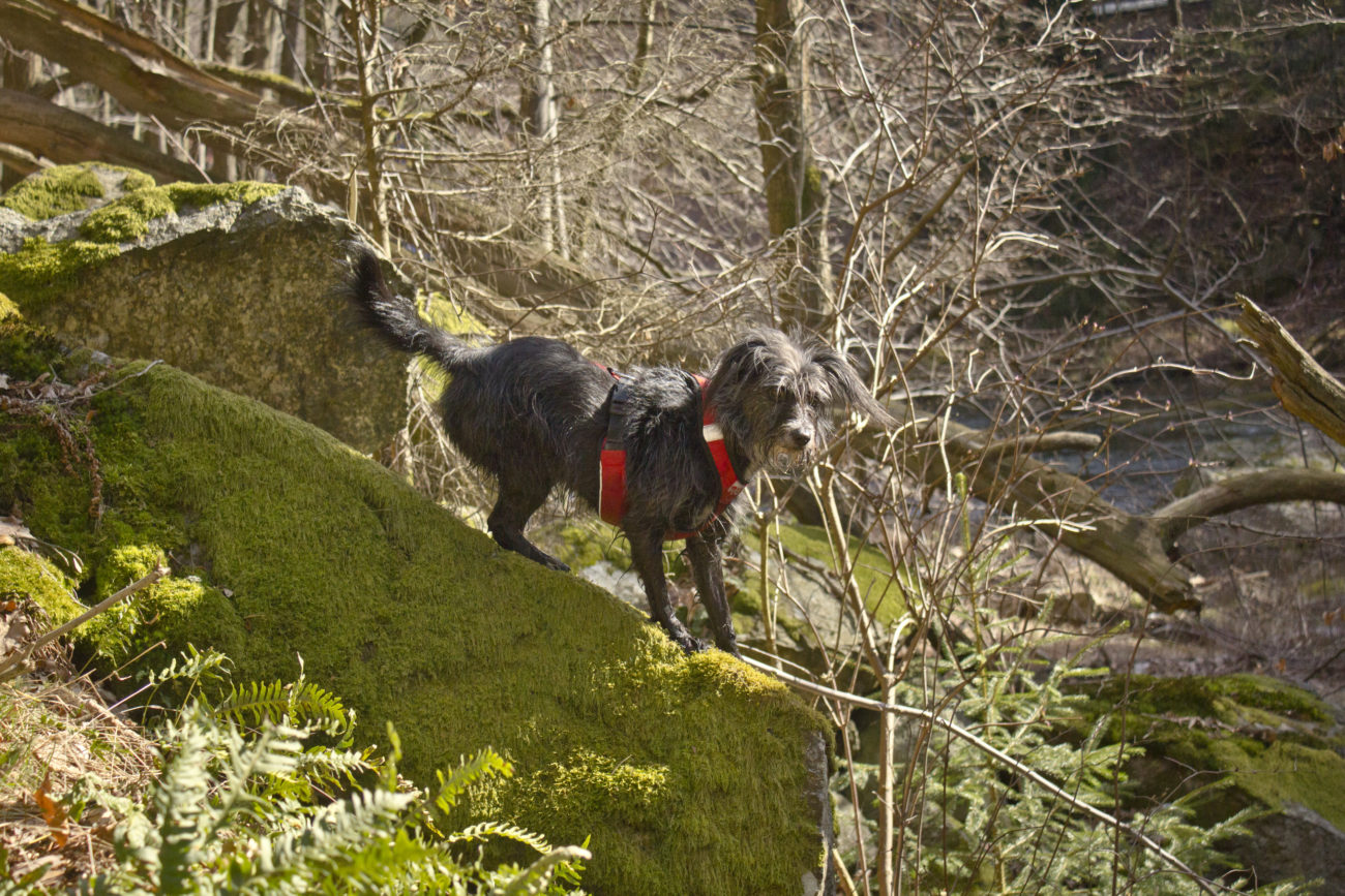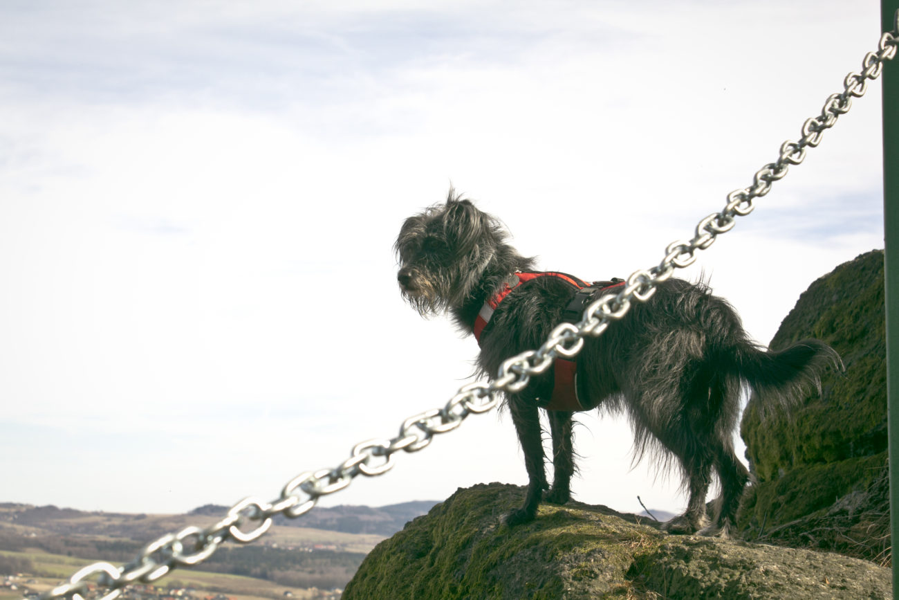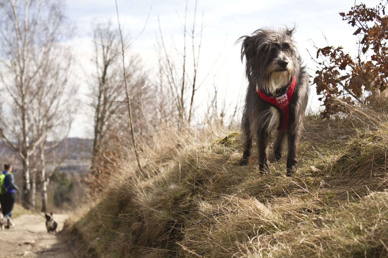 Jak już się uda nasycić widokami i przestrzenią, można ruszać dalej. My wybraliśmy przejście wzdłuż rzeki. Trafiliśmy na względne pustki, futra miały okazję pomoczyć łapki, minęliśmy kilka przyjemnych zejść do wody. Szkoda tylko, że w rzece pływała taka koszmarna ilość śmieci :/ Ścieżka prowadzi łagodnie , nie można narzekać na podejścia. Idealny wybór jeśli chce się wyrobić kilometry, ale przy okazji popaplać, bez zagrożenia zacharchaniem się z zadyszki 😀