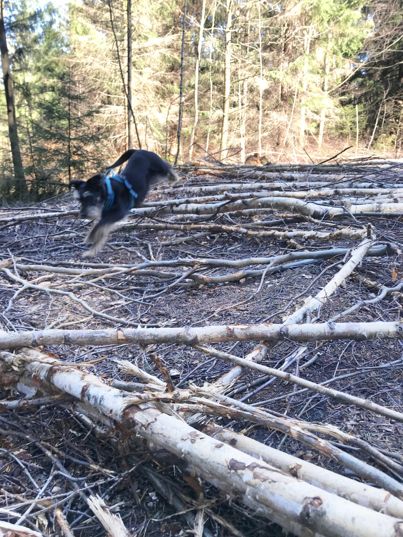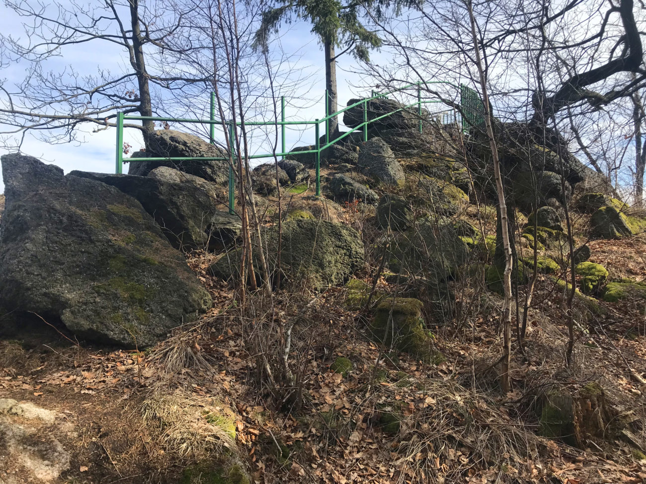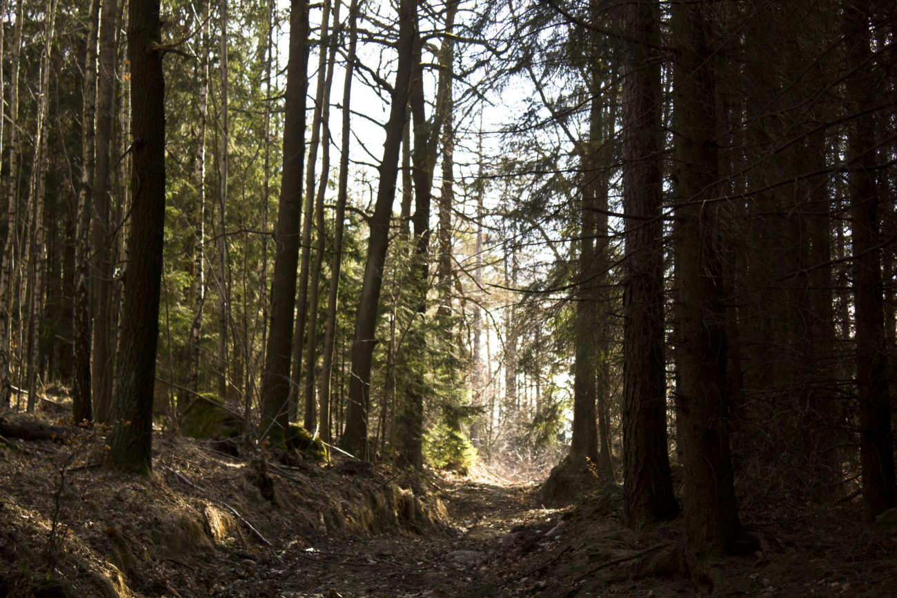 Stąd ruszamy asfaltową drogą (ul. Nadbrzeżna), na wysokości oznaczenia na mapy.cz Polski Młyn odbijamy z asfaltu na ścieżkę leśną. Uwaga- trzeba się przyjrzeć żeby ją znaleźć. Wije się ona pod górę, a wtedy kiedy my nią szliśmy zapewniała dodatkowe atrakcje w formie leżących w poprzek ścieżki sporych gałęzi. Ale mimo takich dodatków warto się nią powspinać. To co dostajemy na szczycie jest warte nawet i dłuższej wspinaczki.