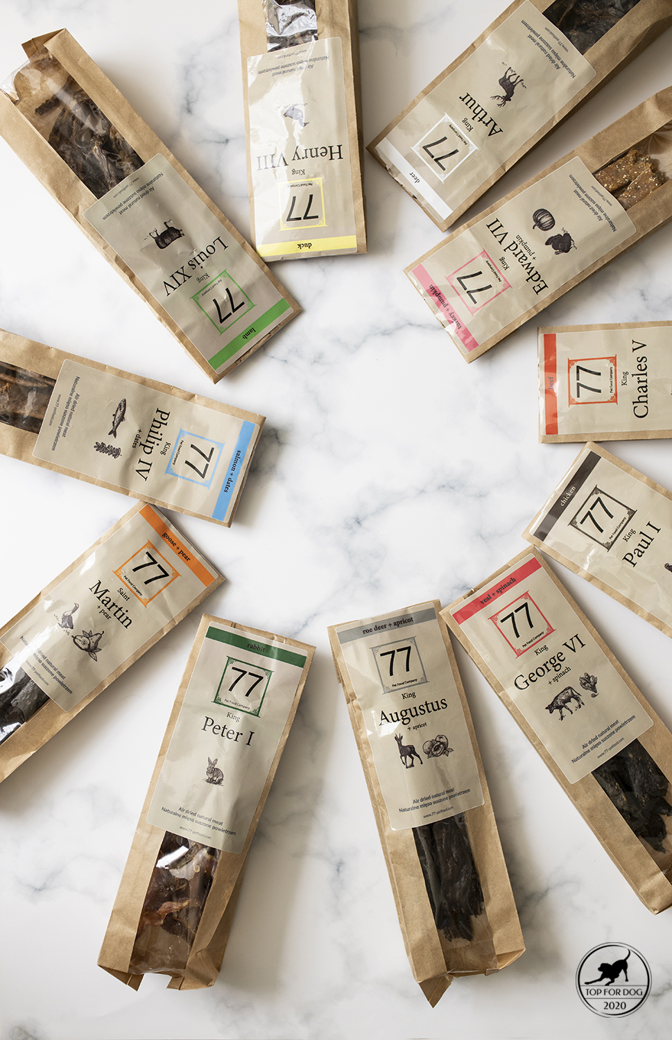 Ok. wiecie już dlaczego daję psom smaczki. To teraz czas najwyższy skłonić się w pas i przestawić produkty z serii Karma77. Kiedy zobaczyłam, że ktoś ponazywał sobie kawałki mięcha od nazwisk wielkich władców Europejskich.. pierwsza myśl- Ci to mają ego! prawie takie jak Pufka, którą trzeba czasem na rękach trzymać kiedy się gdzieś dłużej stoi, bo stópki marzną. Nakręcili sobie więc moje zaciekawienie i jeszcze wnikliwsze oglądanie wszystkiego i wczytywanie się. Powiedziałam OK! takie znamienitości tu macie? SPRAWDZAM ! i sprawdziłam