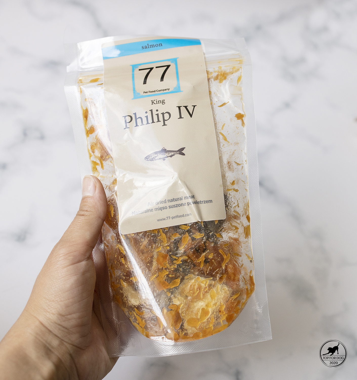Na koniec coś dla mnie ważnego. Estetyka podania. Można się śmiać, ale ja bardzo zwracam na to uwagę. Może to zawodowe spaczenie. Lubię kiedy opakowanie jest ładne, przemyślane. Wzrokowa przyjemność i już. 77 Pet Food daje radę. Opakowanie jest papierowe, z wypełnieniem w środku, zapobiegającym zawilgotnieniu. Mały minus- po otwarciu trzeba opakowanie zabezpieczyć samemu. Klips z ikei się do tego nadaje w sam raz. Troszkę szkoda, że opakowanie nie ma fabrycznie jakiegoś zamknięcia ale z 2 strony przez to, ze jest z cienkiej papiero-folijki, łatwo zamknąć to szczelnie samemu.