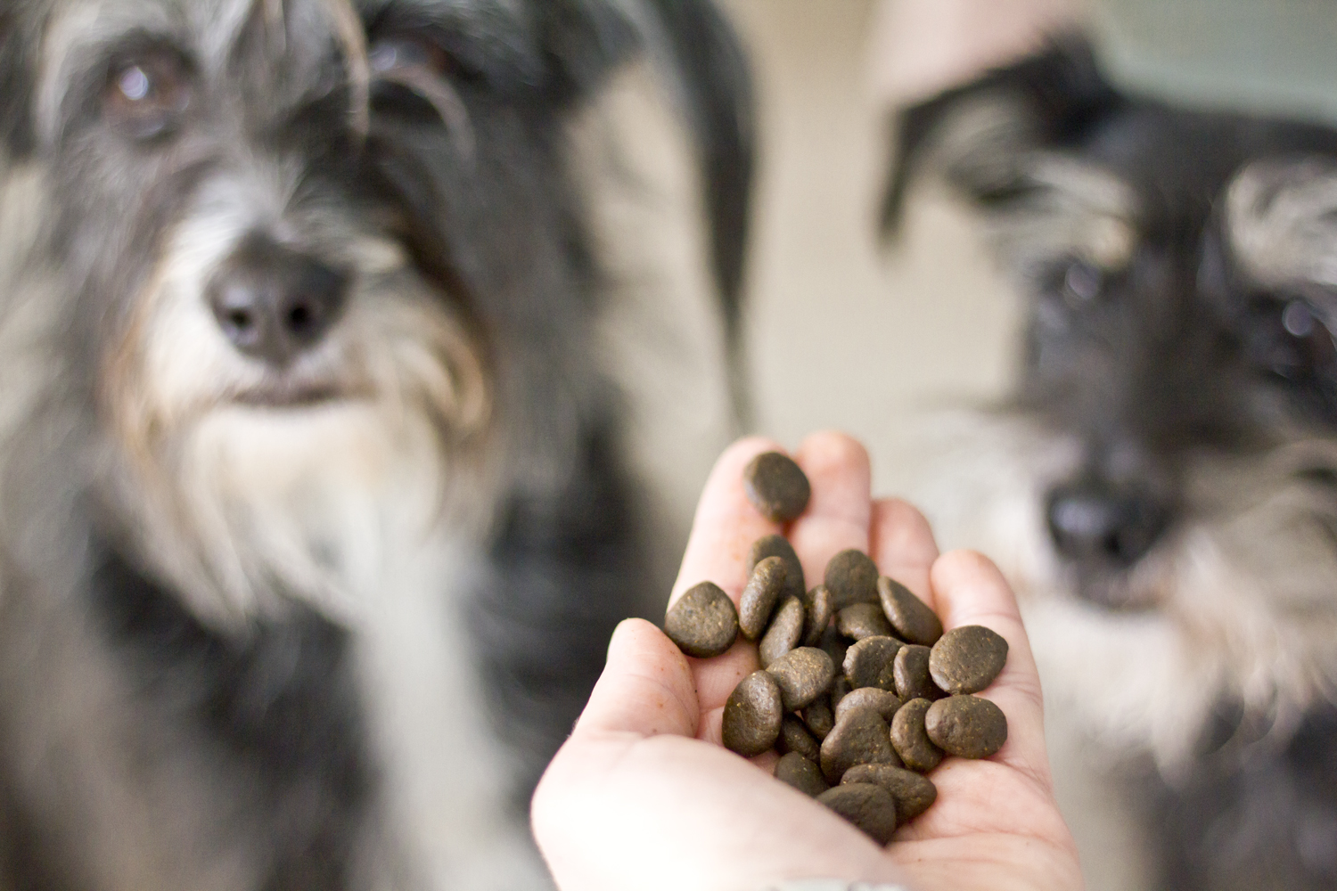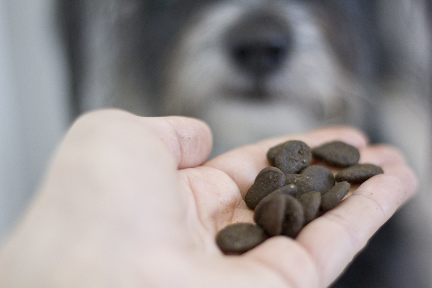 Analizuję, czytam, przeliczam. Jako predatory na diecie BARF w miskach mają czyste mięso. Na kolację suplo zupę dostają doładowaną świeżymi warzywami i owcami. Idealne żywienie ! P nieustannie powtarza, że tak jak suki to on nigdy ne jadał. I jadać nie będzie 😛  Gdzie w tym całym zdrowym żywieniu miejsce na smaczki?
