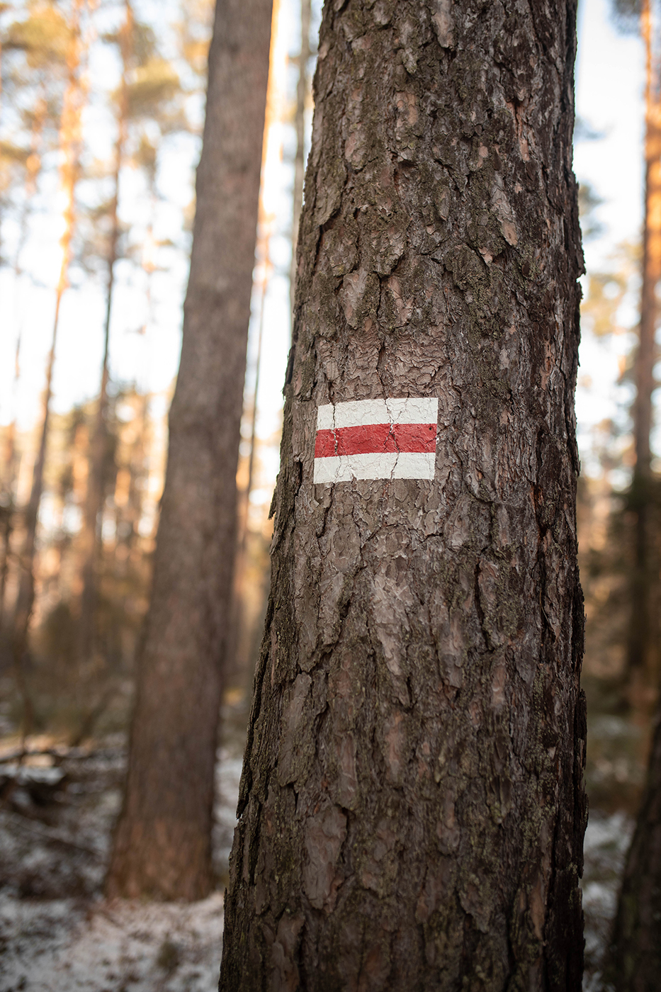 Nawigacyjnie nie ma co się przejmować. Szlak jest dobre oznakowany a my trzymamy się najlepszej możliwej drogi. Istnieje możliwość, że w bardzo wilgotną pogodę, może chwilami być błotniście, szczególnie jeśli widoczne koleiny oznaczają że wycinka będzie tu nadal prowadzona.