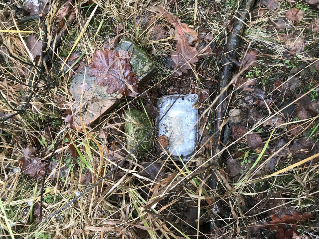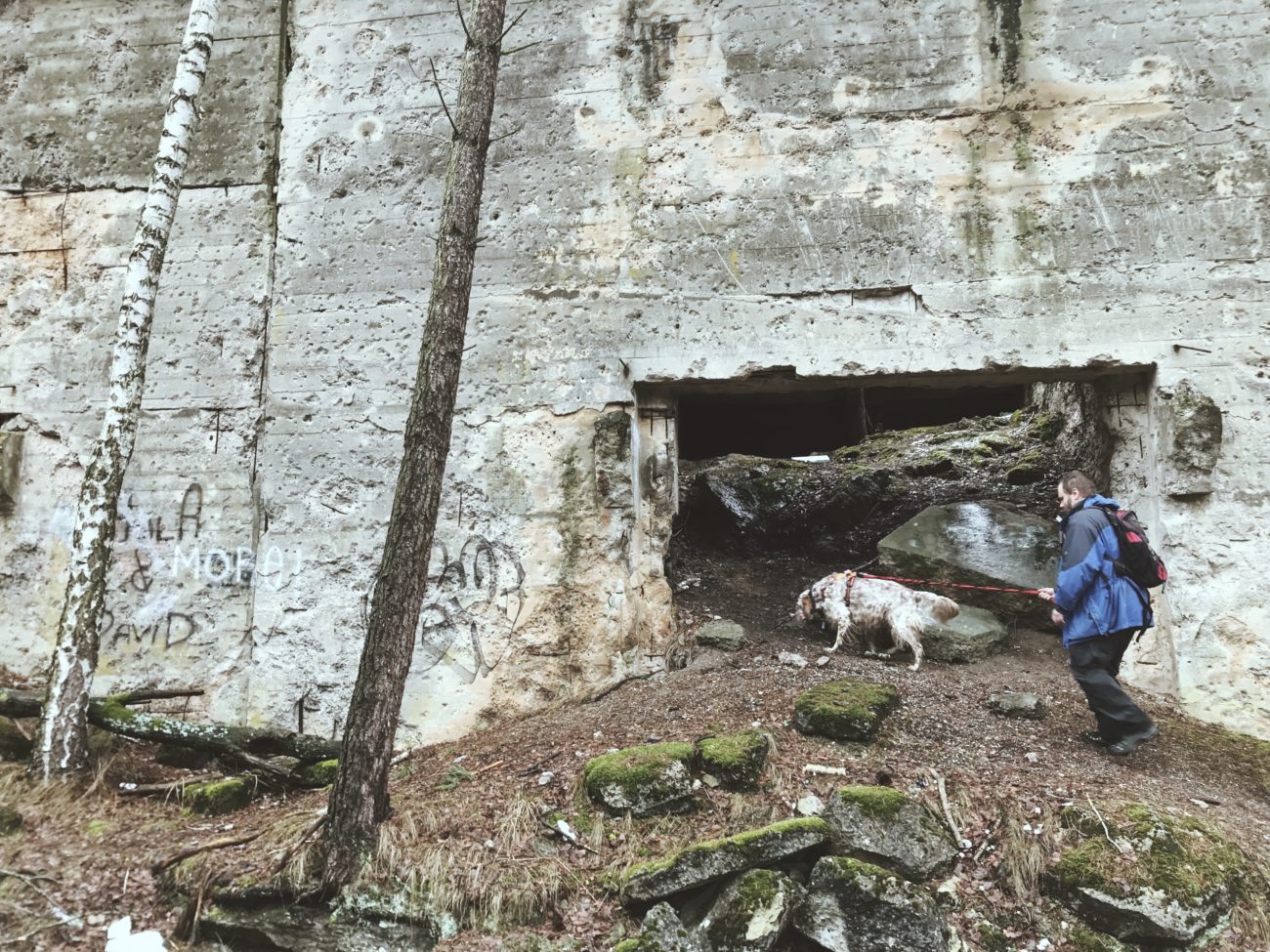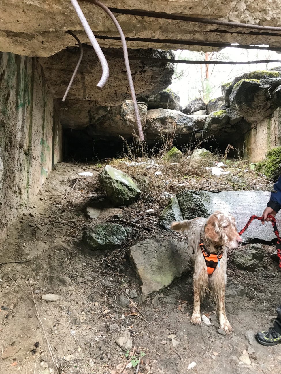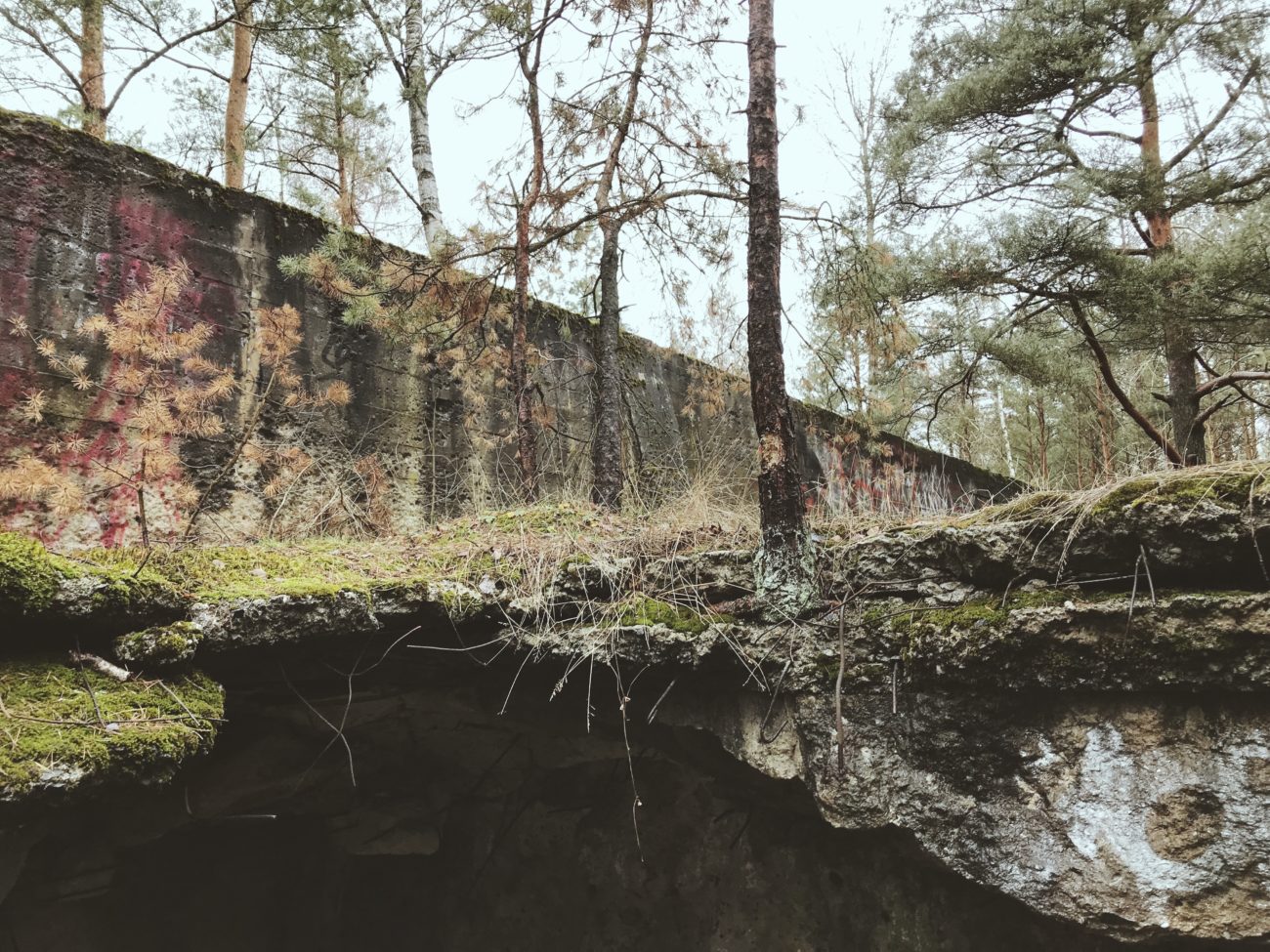 Niestety nie wszystkie oznaczone na apce czy mapce skrytki nadal istnieją. Dobrze przeczytać komentarze internetowo/apkowe z których niestety dowiedzieliśmy się, że niektóre które moglibyśmy „złapać” zostały zniszczone. Pozostaje czekać i liczyć, że ich twórca zdecyduje się na odnowienie. Ale mimo to znajdujemy pokaźny betonowy (zaskok ? ci to mieli tego betonu kurczę niezły zapas…) budynek. według jednego info z opencachingu dawny, zapomniany bunkier, po pogrzebaniu w poszukiwaniu dalszych info- kulochwyt przyzakładowej strzelnicy testowej, co wyjaśnia ilość betonu. Na mnie robi duże wrażenie, spacerując po lesie nie spodziewamy się zazwyczaj znaleźć czegoś takiego.