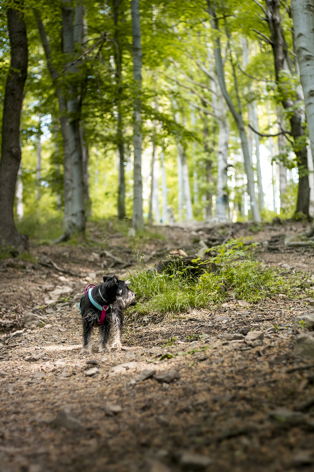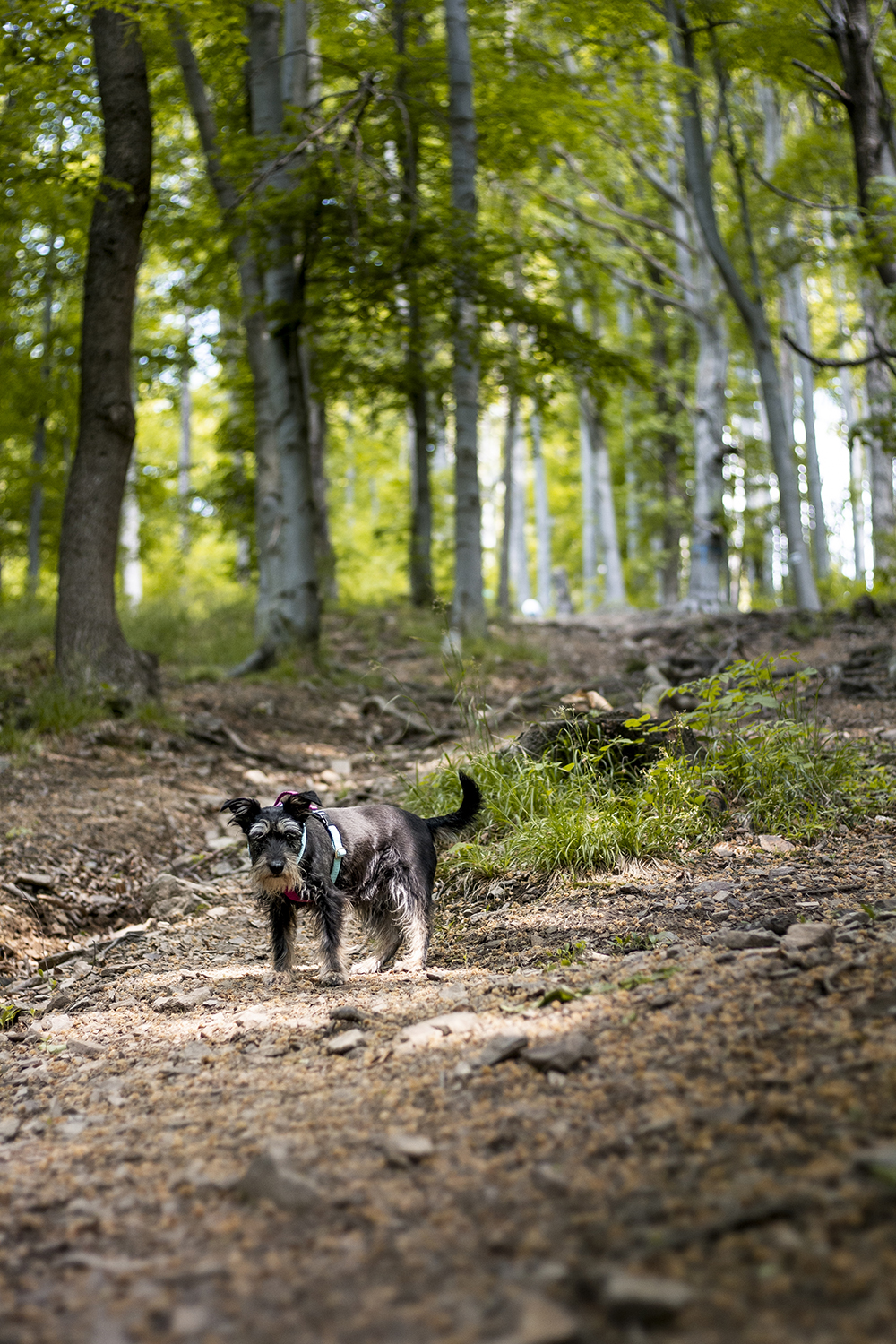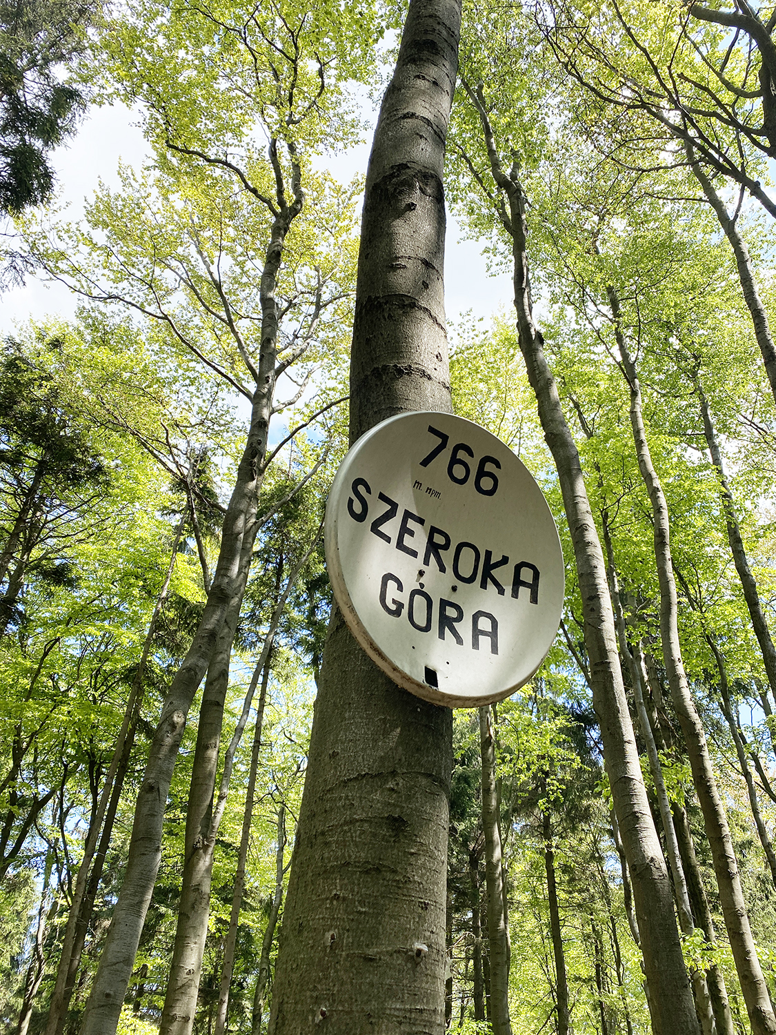 Ponieważ trasa na szczyt to tylko niecałe 3 km uznaliśmy, że fajnie będzie zdobyć jeszcze jakiś szczyt. Jeśli ruszycie dalej zobaczycie ładna, dość szeroką ścieżkę prowadzącą na Szeroką Górę (szalone 766 m n.p.m.) z zerowymi widokami w dal. Ale za to z lasem wokoło, więc mimo braku dalekiego zasięgu wzrokowego czuję się usatysfakcjonowana. Idąc dalej nieoznaczoną ścieżką możemy „spaść” równolegle do szlaku, by na wysokości chwilę przed Podzamecką Kopą wpaść znowu na znany nam już szlak.