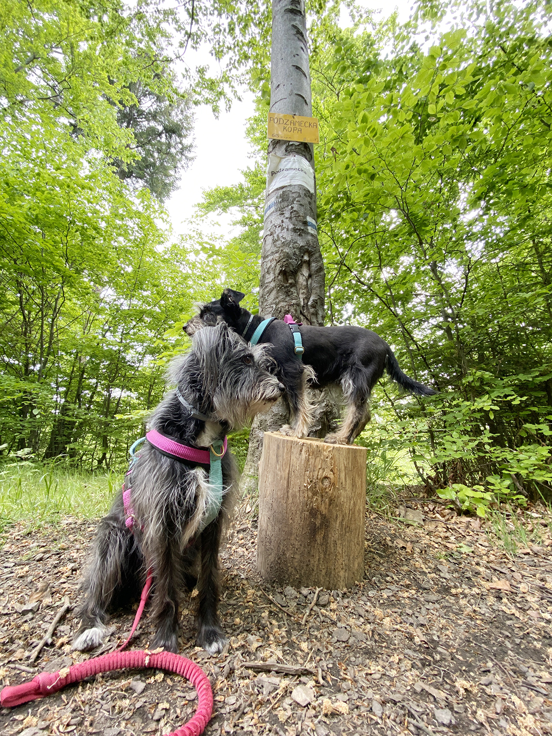 Z rozdroża Trzech Granic kontynuujemy wędrówkę na szczyt żółtym, na który przeskakujemy krótkim, nieoznaczonym łącznikiem. Niecałe 300 metrów i osiągamy cel . Podczas naszego pobytu na szczycie z atrakcji mieliśmy : skrzyneczkę z pieczątką i paroma rzeczami „do wzięcia”. Oraz podstawę wieży widokowej. Aktualnie stoi już i ma się dobrze. Ja jestem uzależniona od wież widokowych ale jednak wolę je, kiedy już opadnie zainteresowanie nimi. Kiedy miejsce przestanie być nowe, a odwiedziny tam nie będą oznaczać obcowania z tłumami.