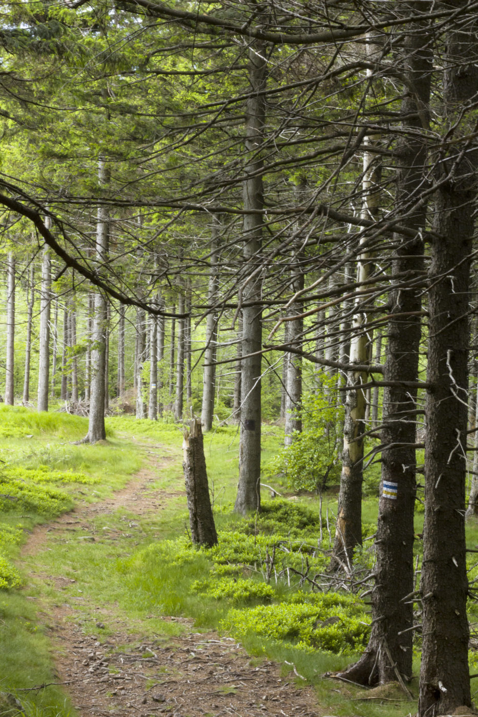 Zaparkowawszy, spakowawszy cały grajdoł do plecaczka ruszamy na szlak. A właściwie na kawałek ścieżki, ktra doprowadza nas do szlaku niebieskiego , który przez część trasy pokrywa się ze szlakiem żółtym.