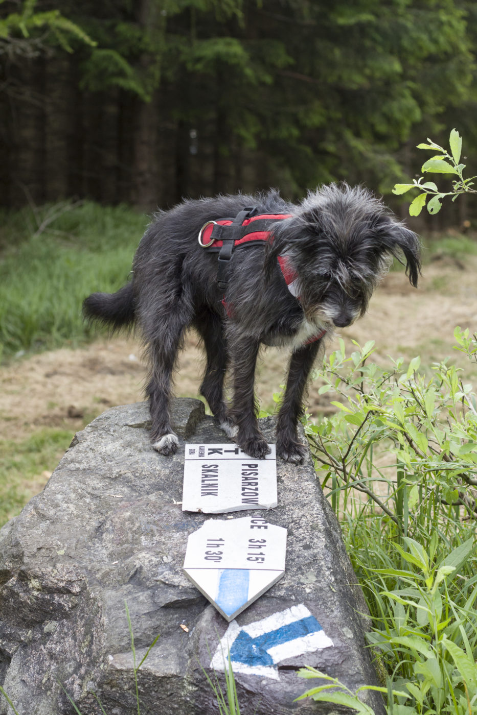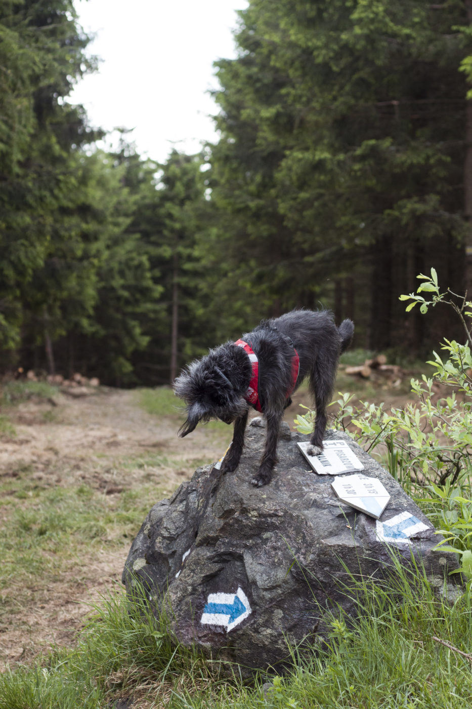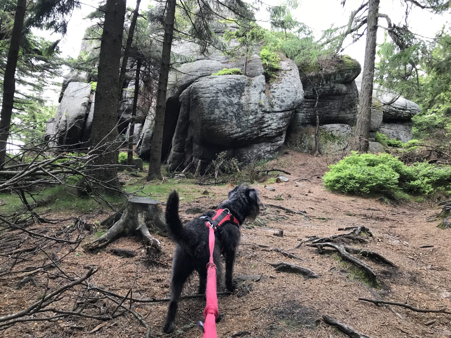Zatem ruszamy niebieskościami, bardzo przyjemnymi ścieżkami, jak przystało na Rudawy. Troszkę klasykami leśnymi, troszkę podeściami po kamieniach a i trochę, wtedy kiedy my wędrowałyśmy i trasą z przeszkodami. Połamane drzewa, leżące w poprzek ścieżki ostatnio są częstą atrakcją. Jak choćby na podejściu na szczyt Dzikowca . Ale takie małe utrudnienia nie zniechęcą mnie do zdobywania Skalnika!