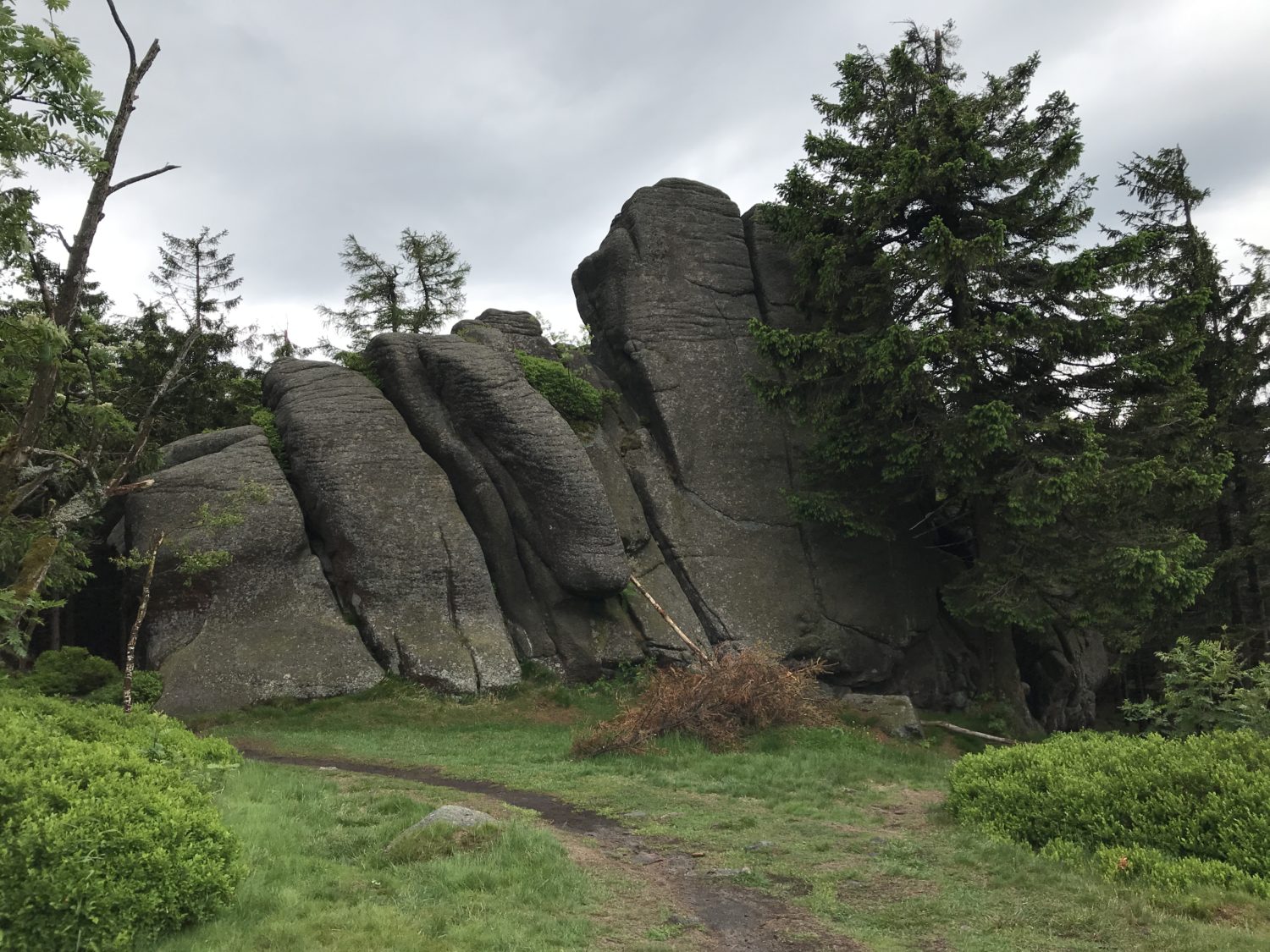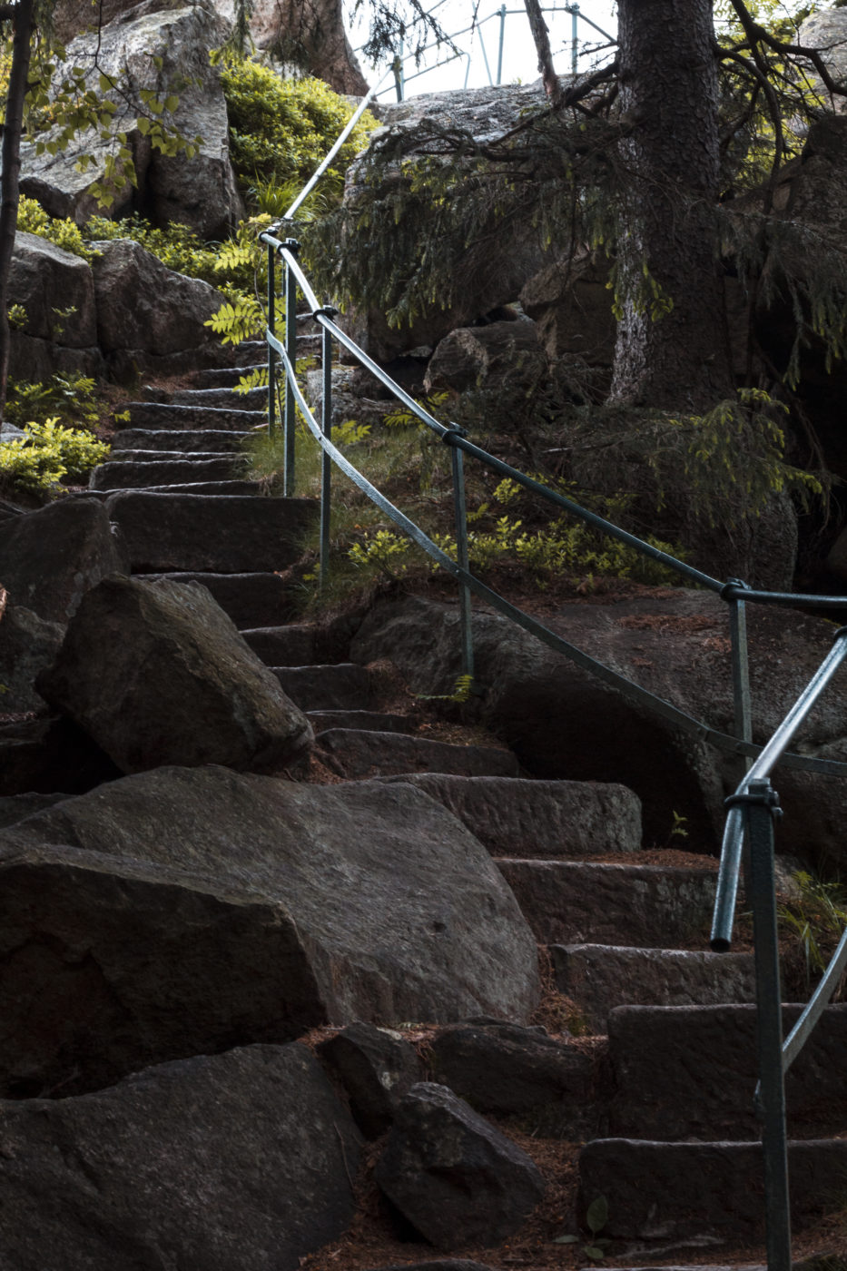 Żeby dodać sobie jeszcze coś ciekawego do zobaczenia, ze Skalnika, który swoją drogą łatwo minąć bez zauważenia jeśli się dobrze rozpędzić lub zagapić, wystarczy pomaszerować jeszcze chwilkę prosto, zlokalizować pomnik i dać się ponieść ścieżce w bok. Nie zrażać się dojściem do formacji skalnej, podreptać jeszcze chwilkę (przypominam o niezastąpionej apce, działającej też offline mapy.cz- z nią nie zwątpicie czy aby na pewno warto zapuszczać się  jeszcze dalej -WARTO) po to, żeby stanąć przed schodkami.